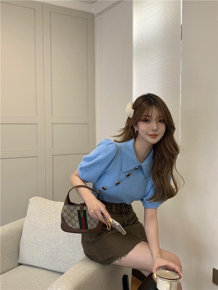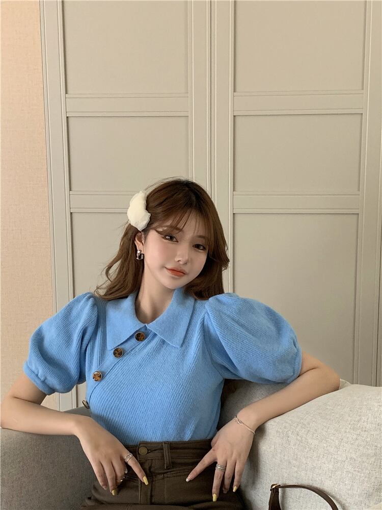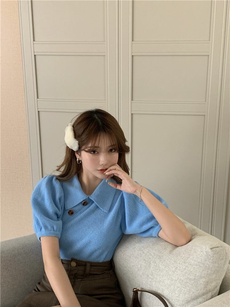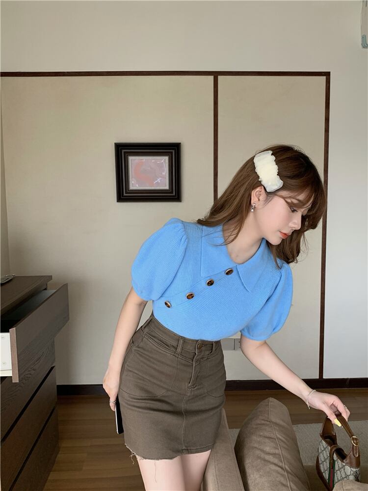 スリーブカラーショートスリム長袖ニットトップス スプリングシャツ ロング 春物 YY-ファッション16764379623
