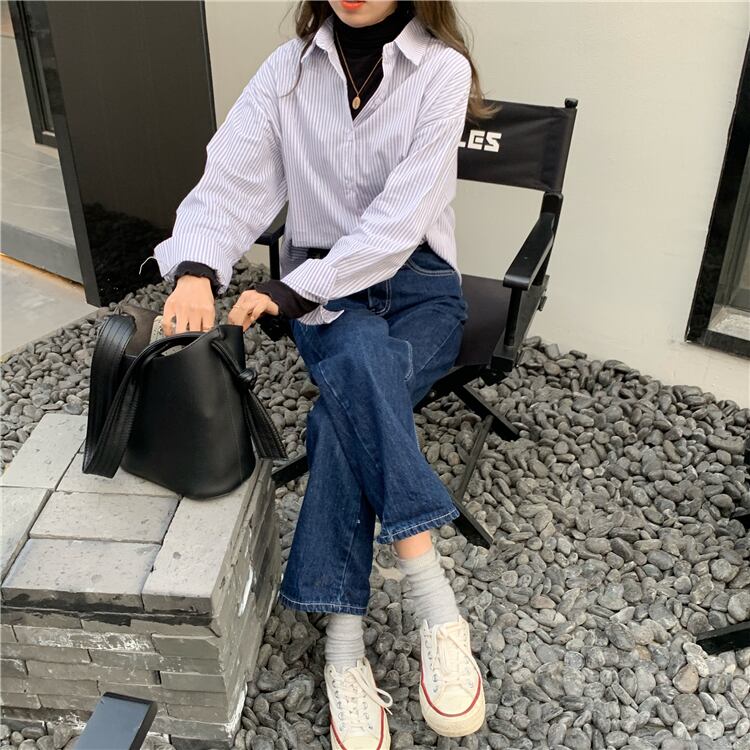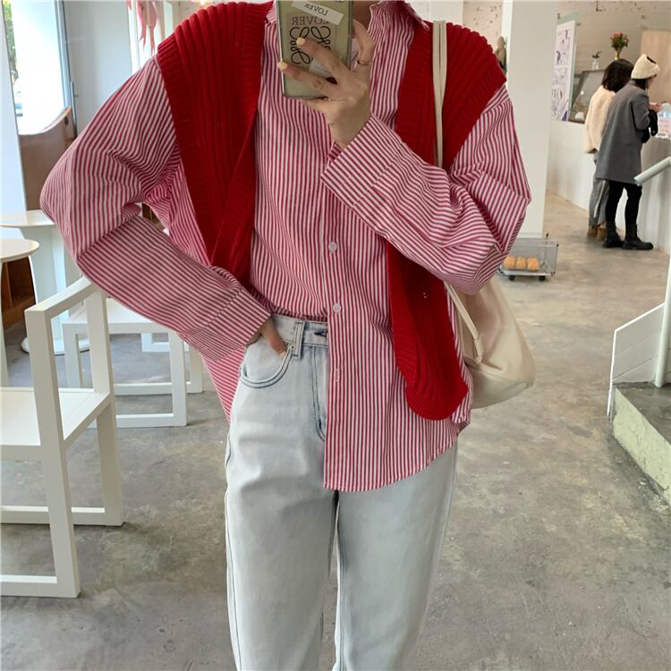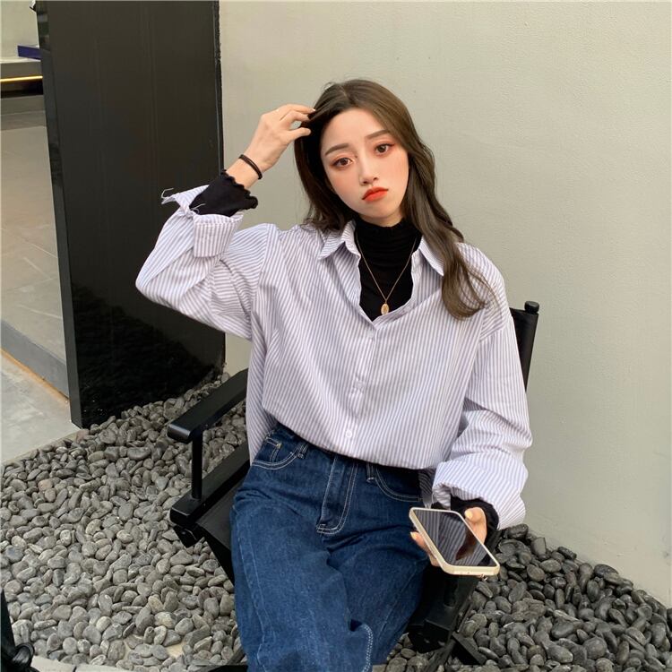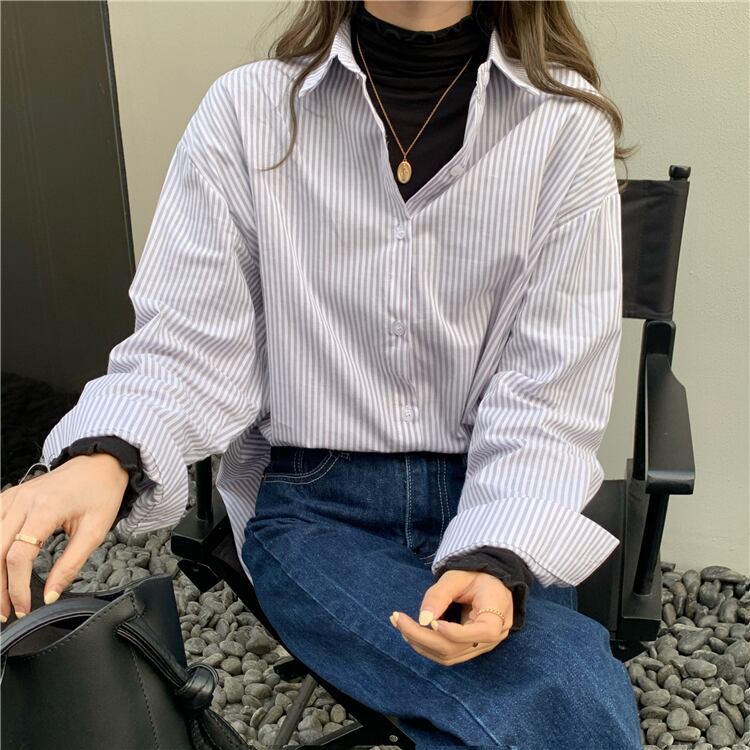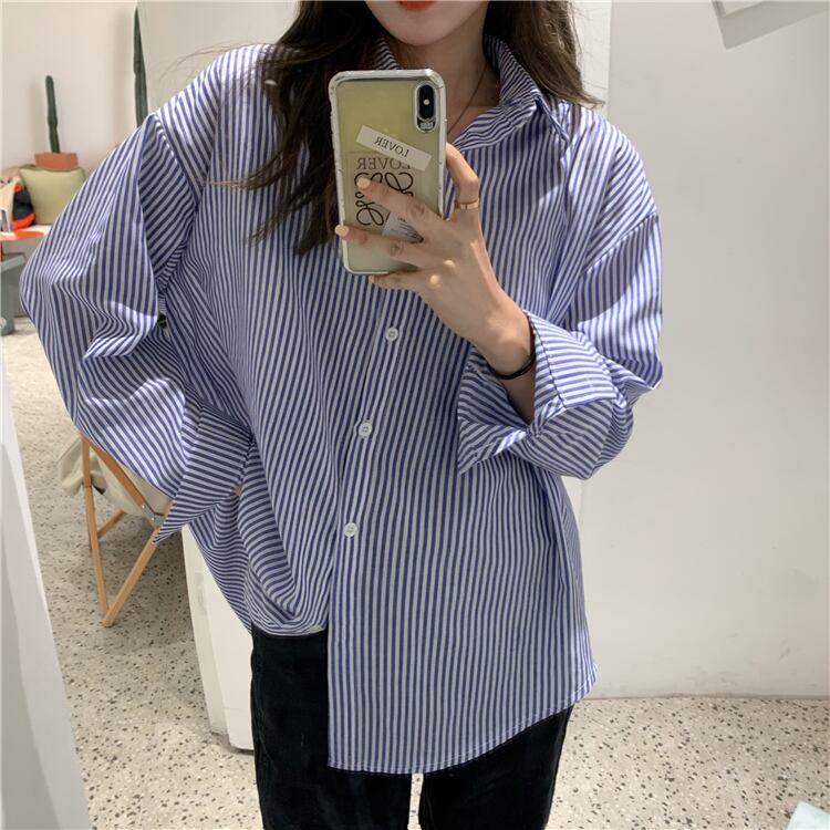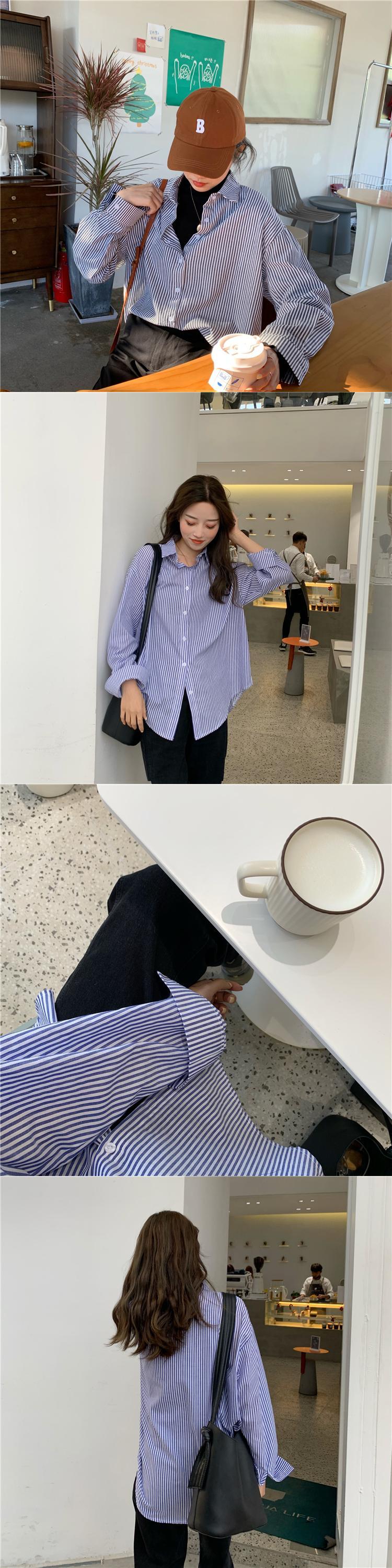 カジュアルシャツ レディーススプリングルーズストライプカーディガン 春物 YY-ファッション25483670954