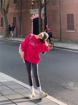 色:ラズベリーパウダーセーター,グレーのレギンス