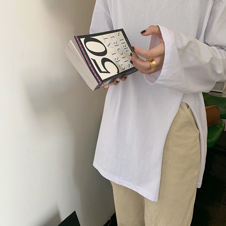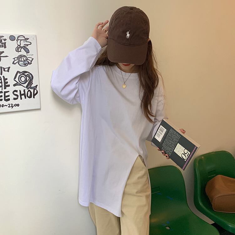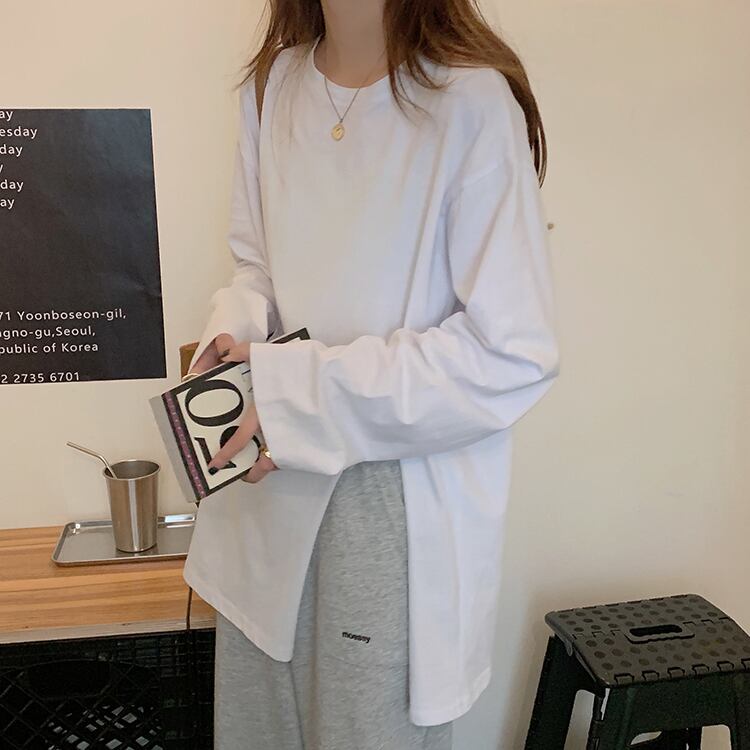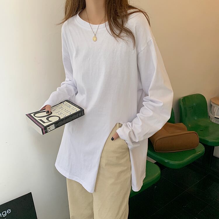 オータムホワイトTシャツ シャツ トップス ルーズ ロング 秋物 YY-ファッション31996441393