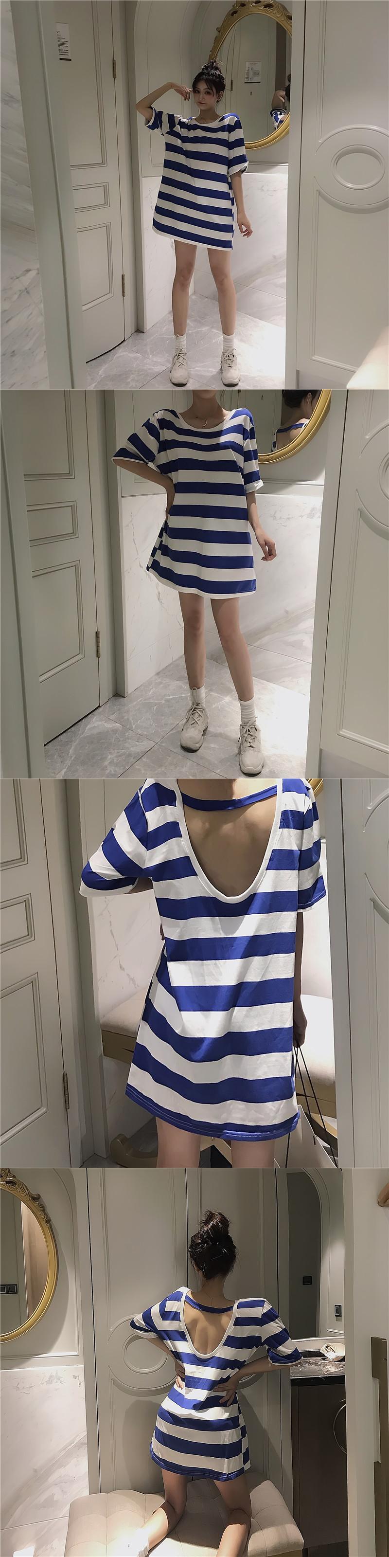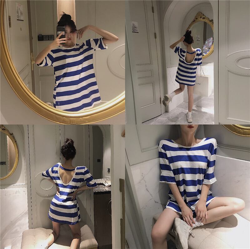 スタンダードバックレスストライプTシャツ レディーススプリングルーズトップス レトロ 春物 YY-ファッション98676791356