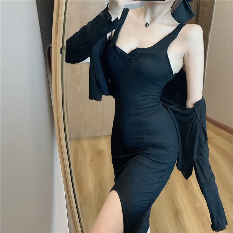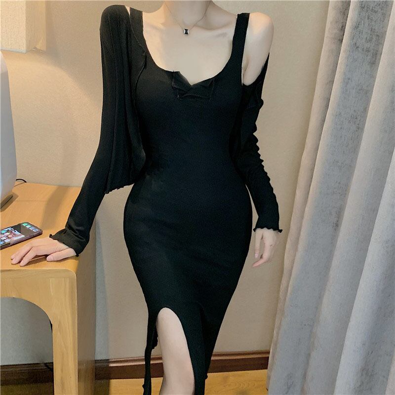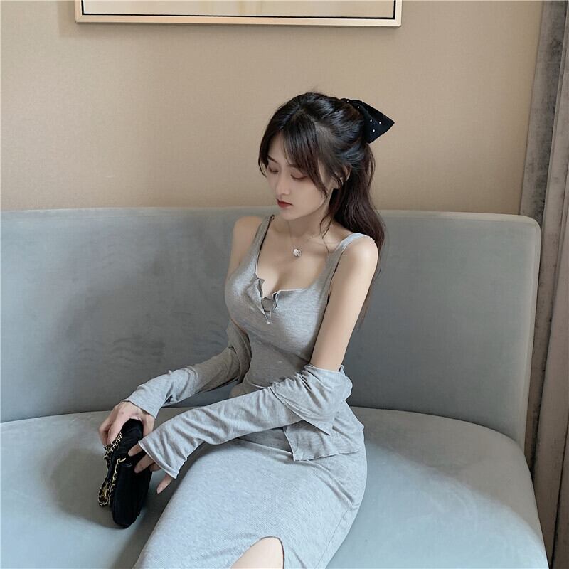 スプリングスリムドレス カジュアルソリッド カラーカーディガンレディース ロング 春物 ソリッドカラー YY-ファッション90363170540