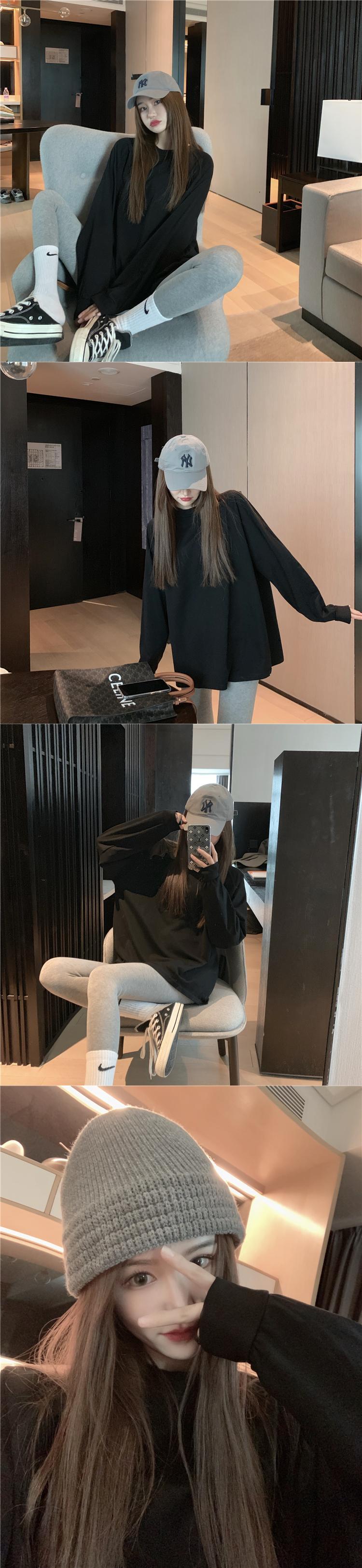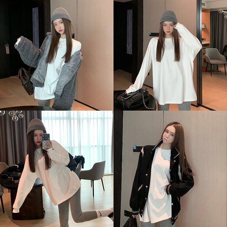 ホワイトシャツ ロングルーズベルベットTシャツ トップス 長袖 スプリング 春物 YY-ファッション97309742857