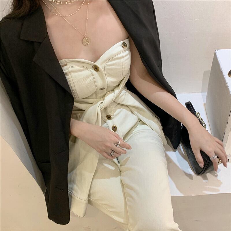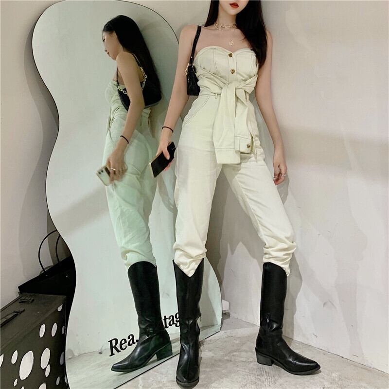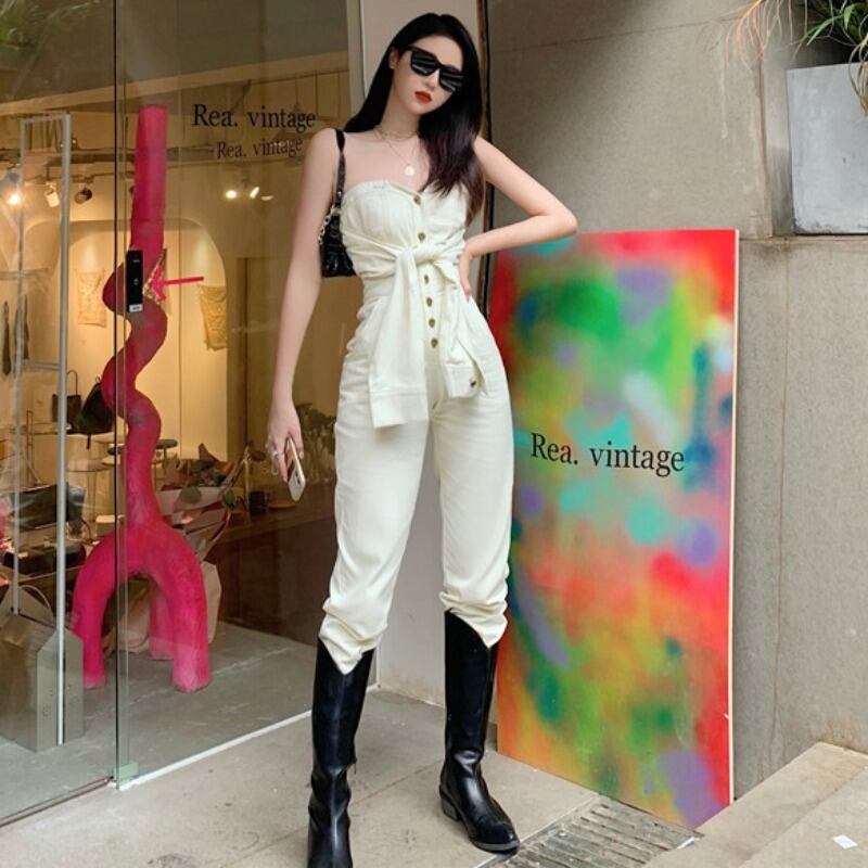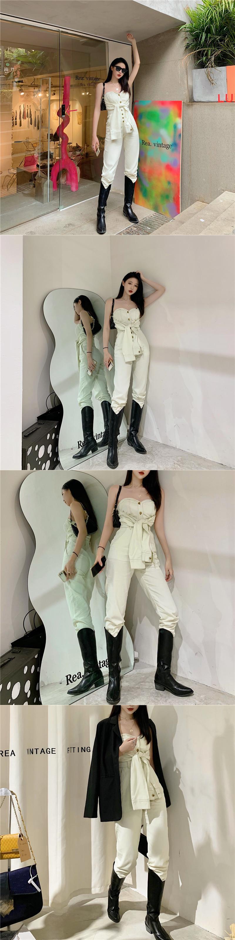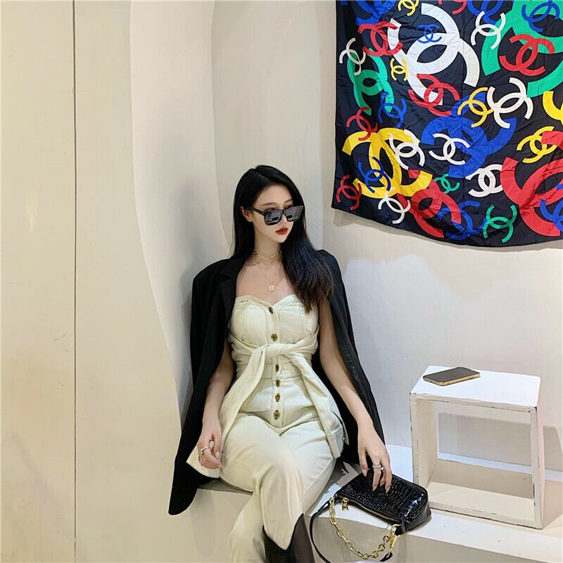 スプリングスタンダードハイウェストウェストトップス ジャンプスーツ オールインワン ブラックポケットジャケット レディース レトロ 春物 YY-ファッション29824241532
