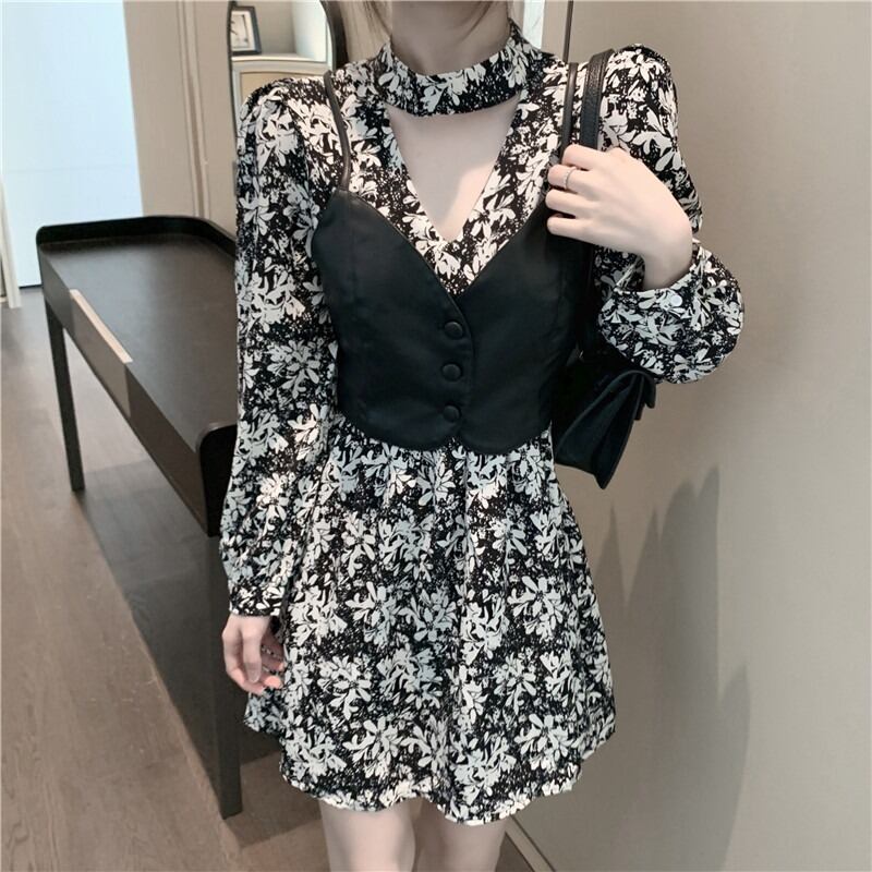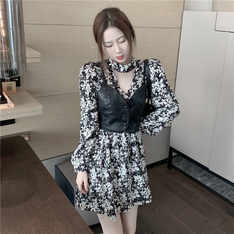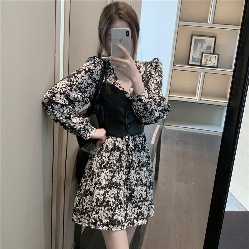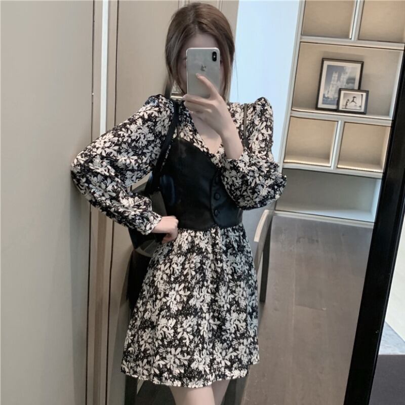 スタンダードスリーブウェストフローラルドレス レザースプリング レトロ 春物 花柄 YY-ファッション78383660025