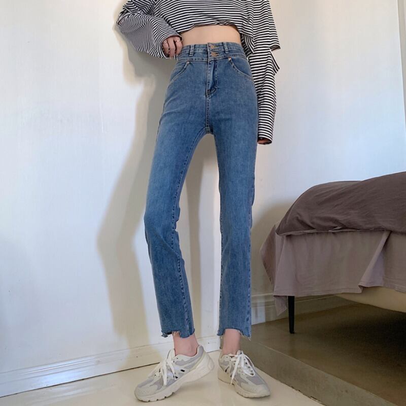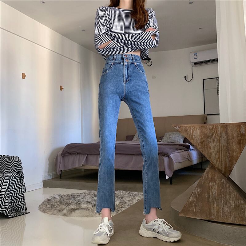 スプリングハイウェストスリムクロップドジーンズ レディースパンツ 春物 YY-ファッション85334994803