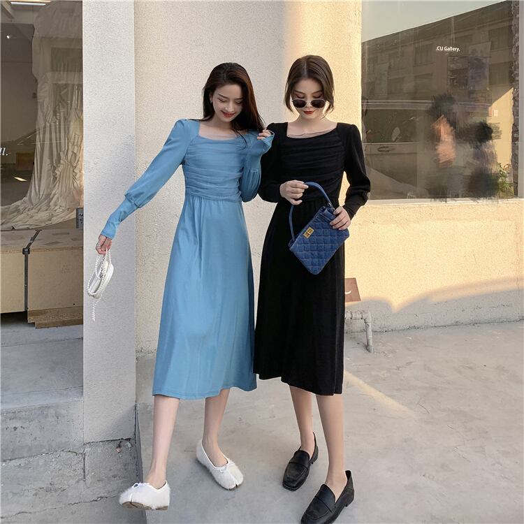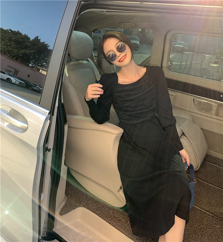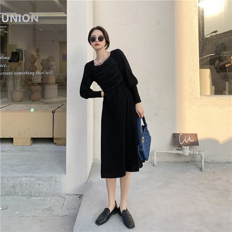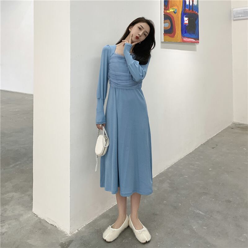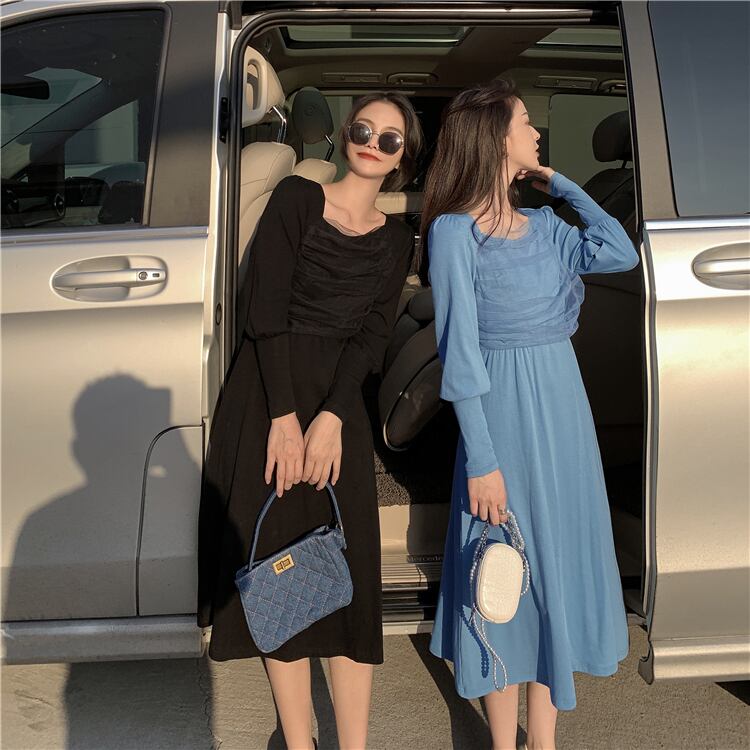 スプリングスタイルロングメッシュドレス カラースリムスカート 春物 スクウェア ステッチ YY-ファッション63239885992