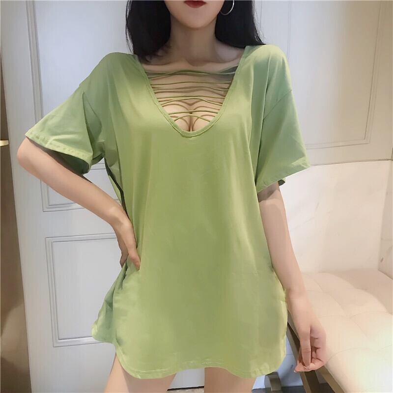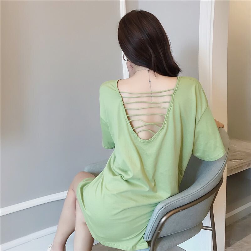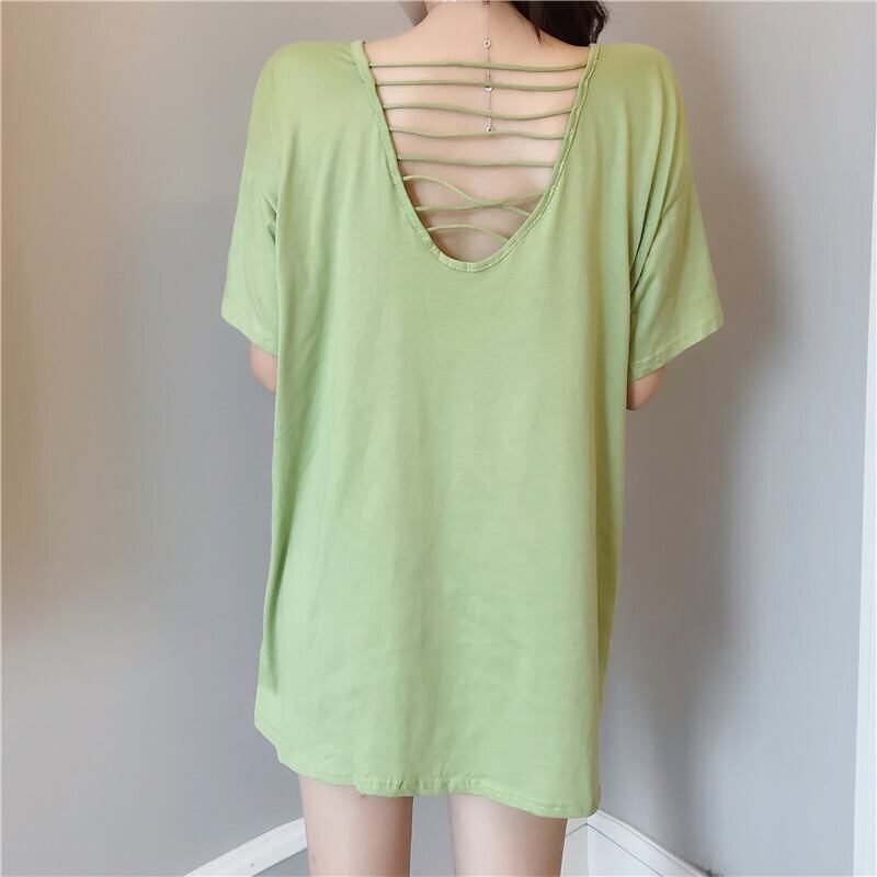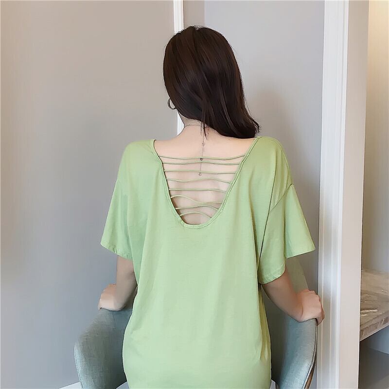 バックTシャツ スプリングルーズ薄手ソリッド カラートップス 春物 ソリッドカラー YY-ファッション5244173106