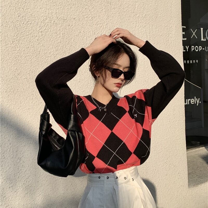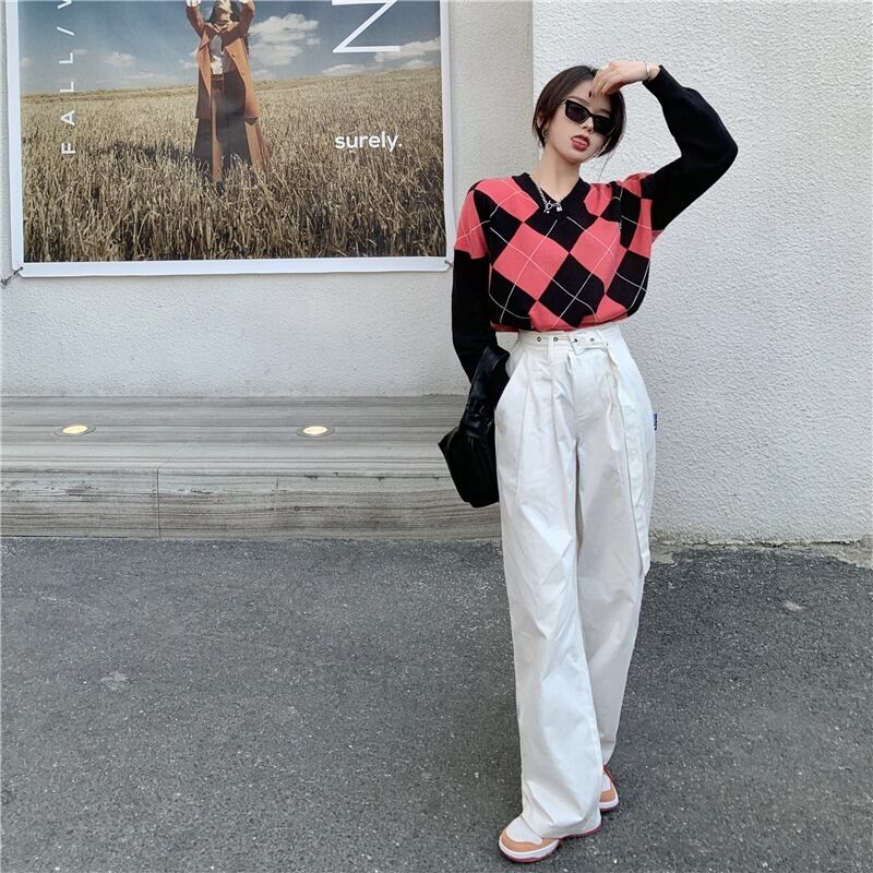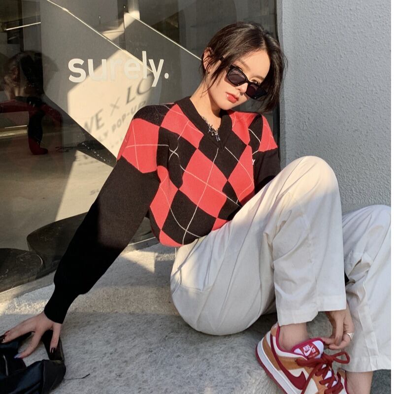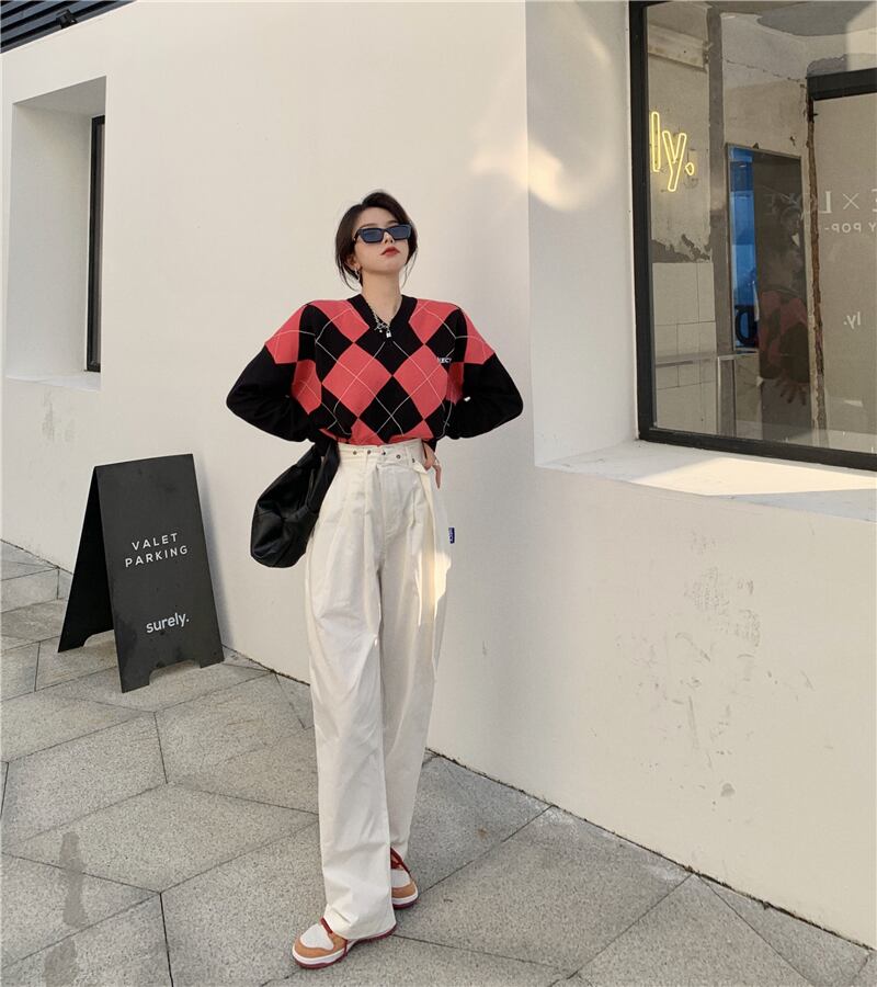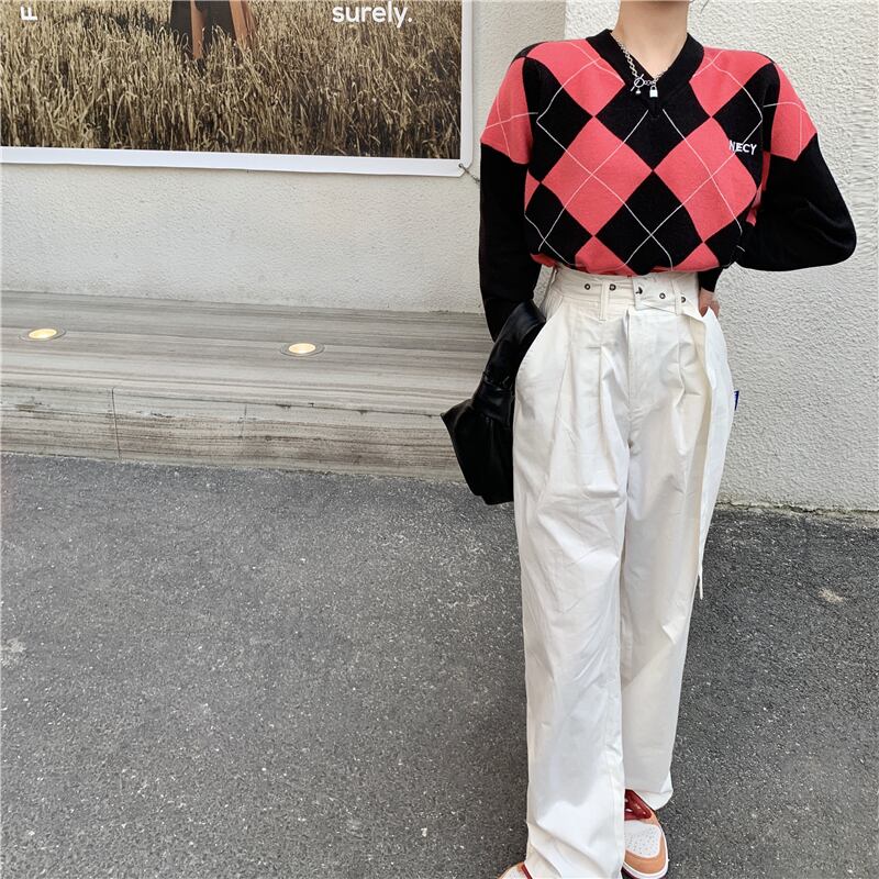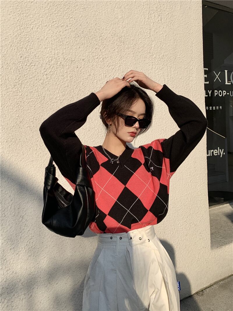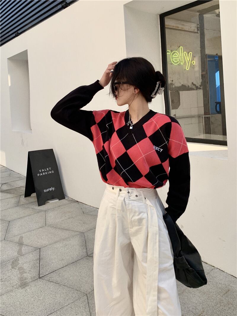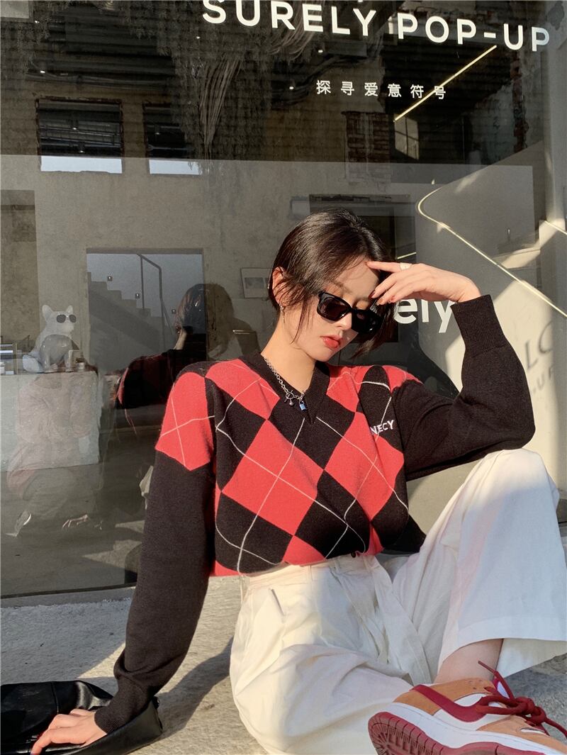 セーター レディーススタンダードスタイルカラーVネックスプリングルーズトップス コート ロング レトロ 春物 YY-ファッション1556304576