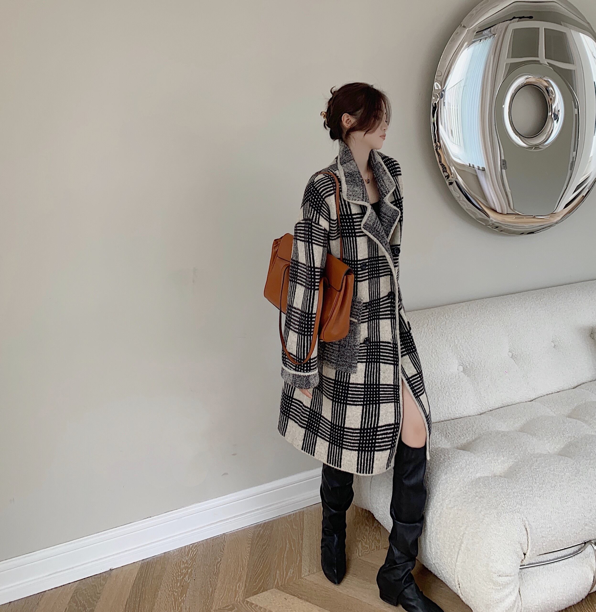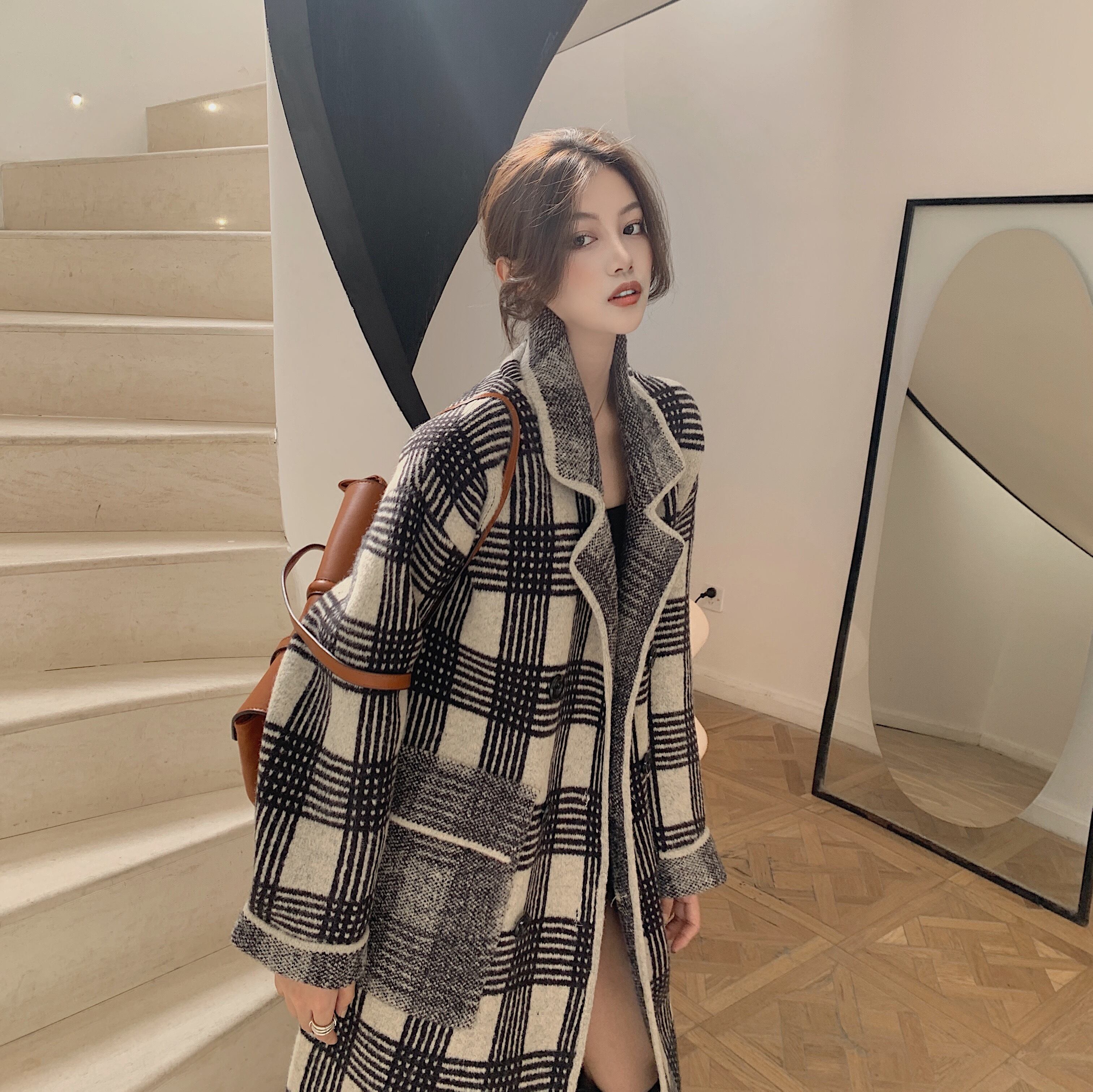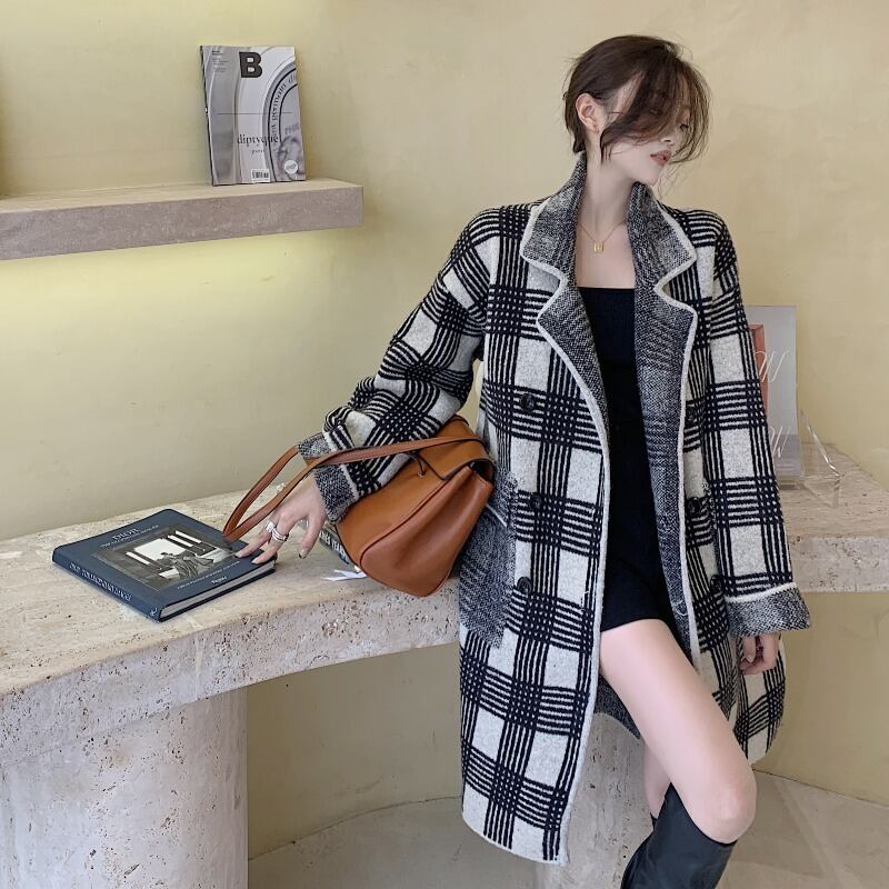 格子柄コート スプリングスタイル長袖スリーブ ロング 春物 YY-ファッション4584029193