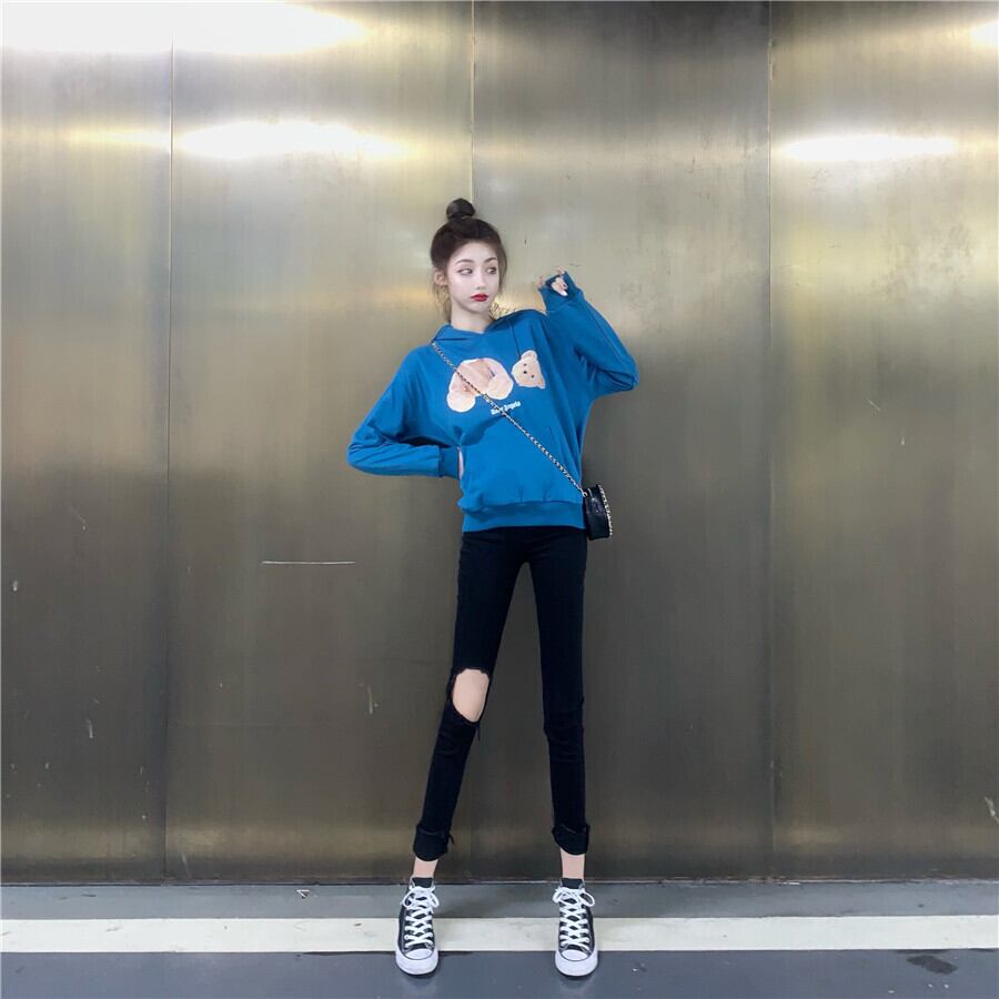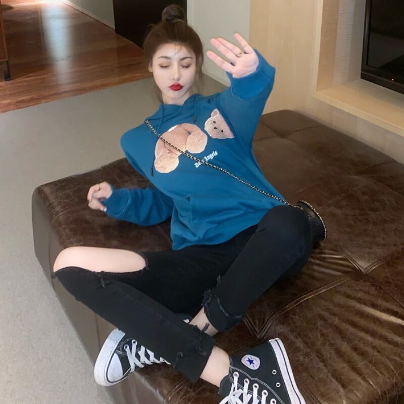 スタイルフードセーター レディーススプリングルーズプリント柄プルオーバー トップス 春物 YY-ファッション69531722384