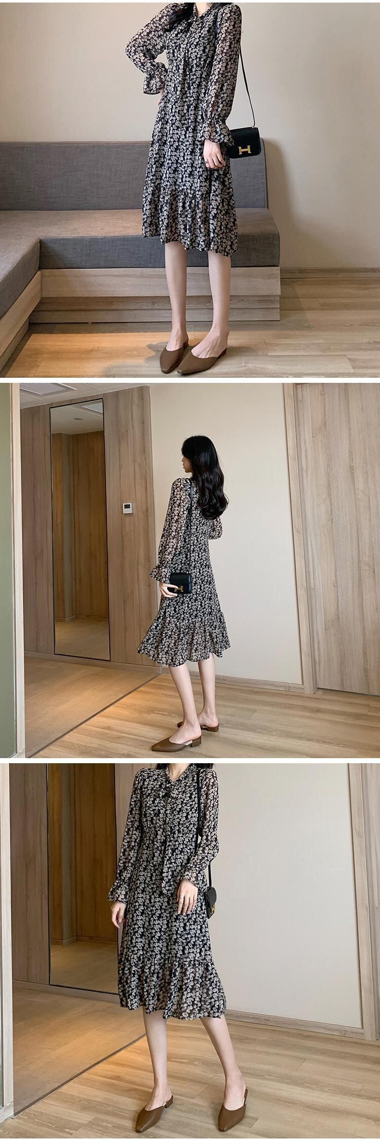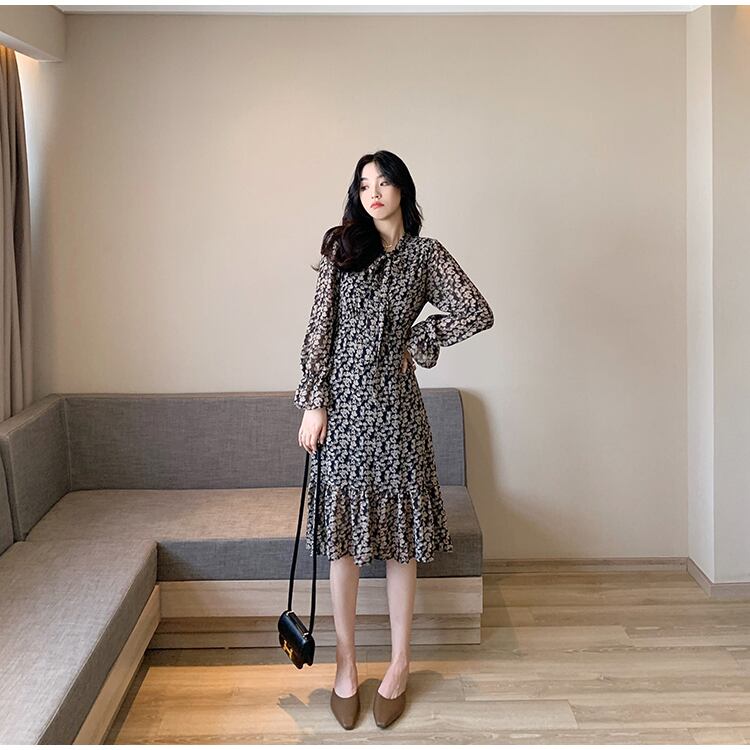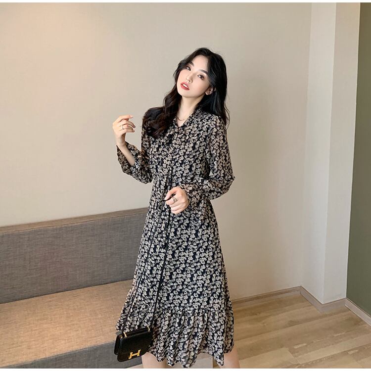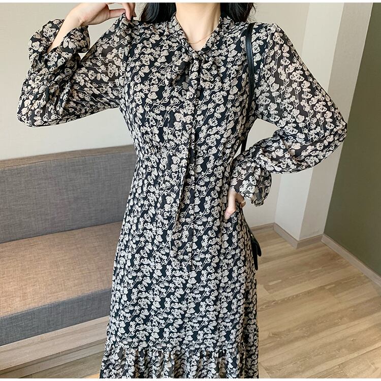 フローラルシフォンドレス スプリングスタンダードレースロングスカート レトロ 春物 花柄 YY-ファッション33801359679