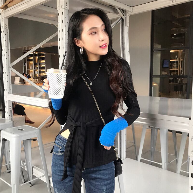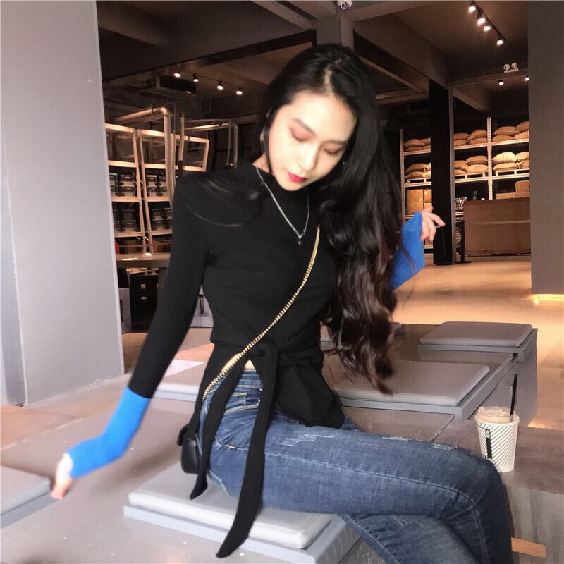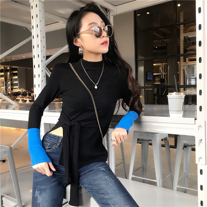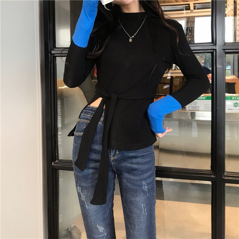 スプリングスタイルカラーベルト Tシャツ セーター トップス レディース ロング レース 春物 ハーネス レースアップ YY-ファッション70714866063