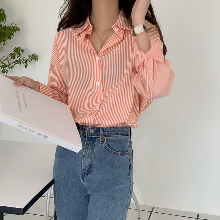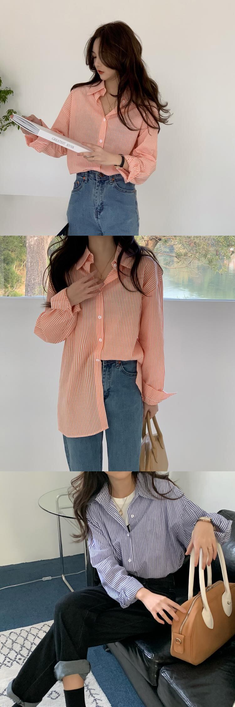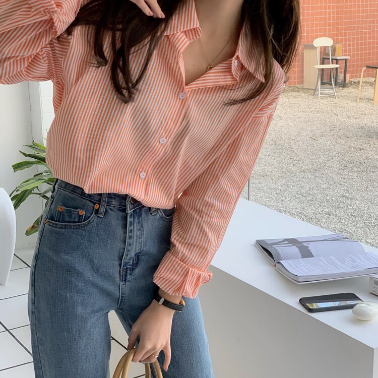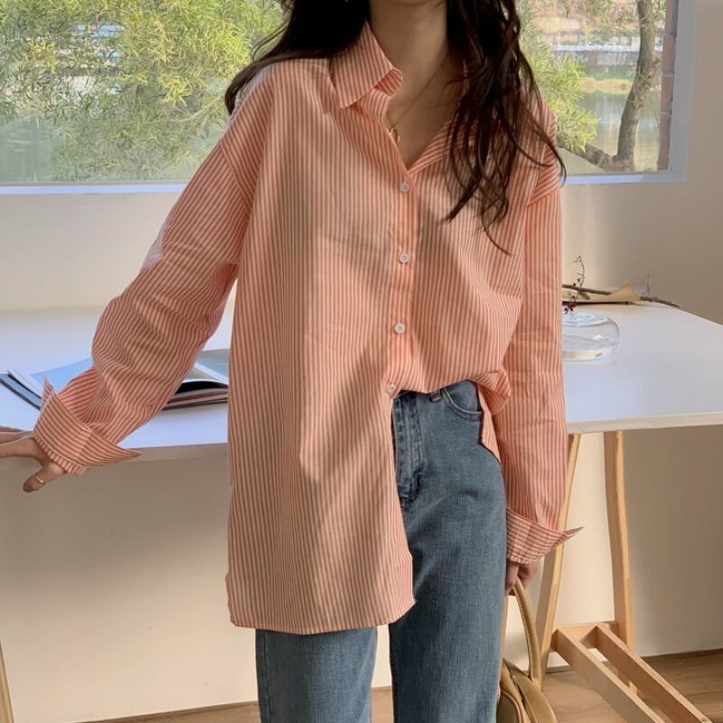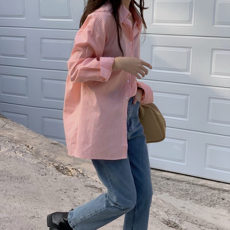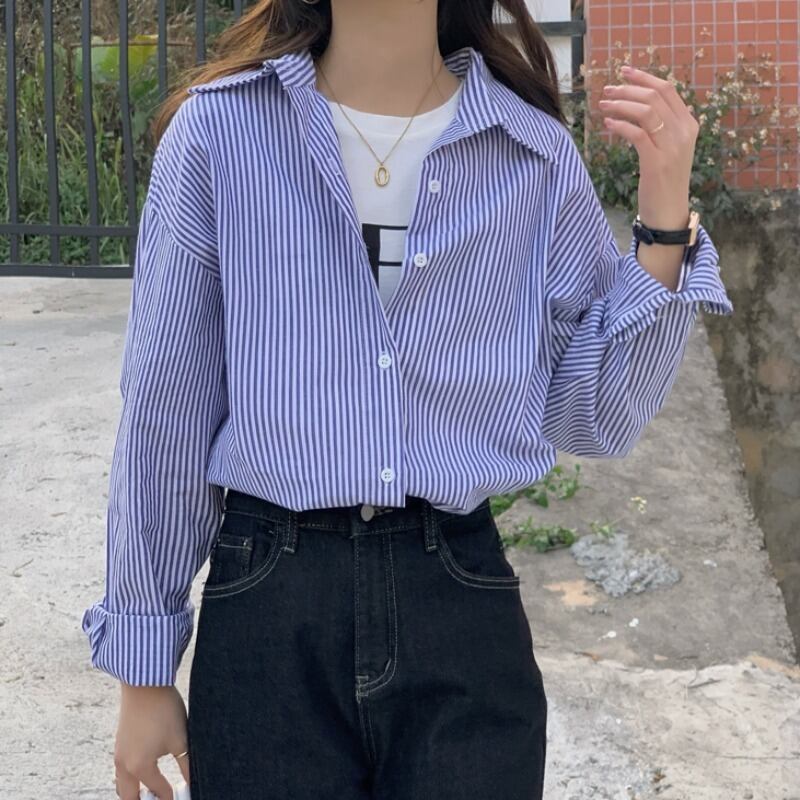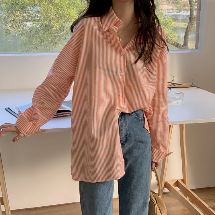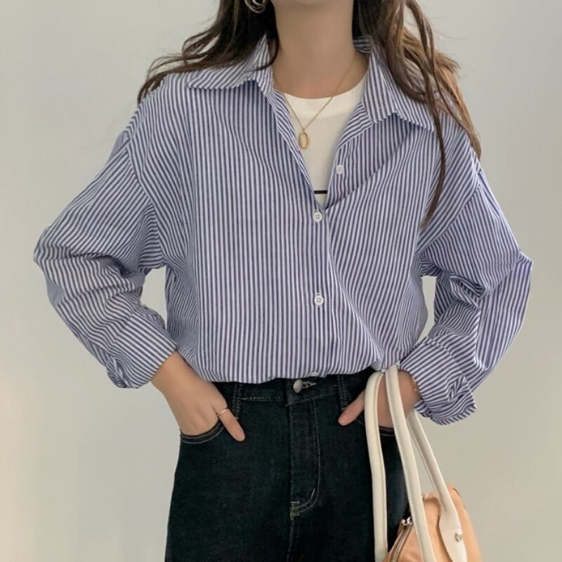 ルーズストライプシャツ スタイルブラウス スプリング ロング 春物 YY-ファッション57645963476