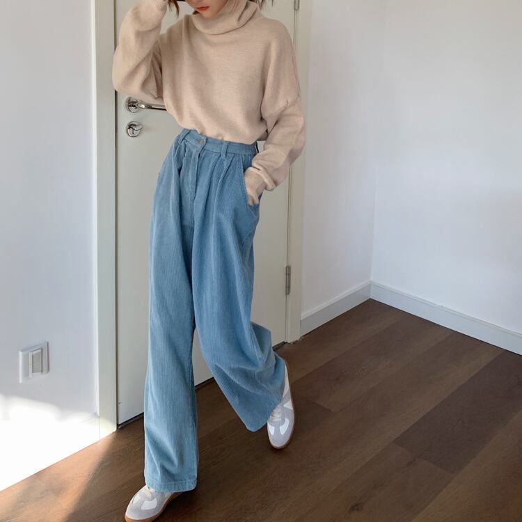 ハイウェストウェストコーデュロイパンツ ルーズカジュアル YY-ファッション70653444771