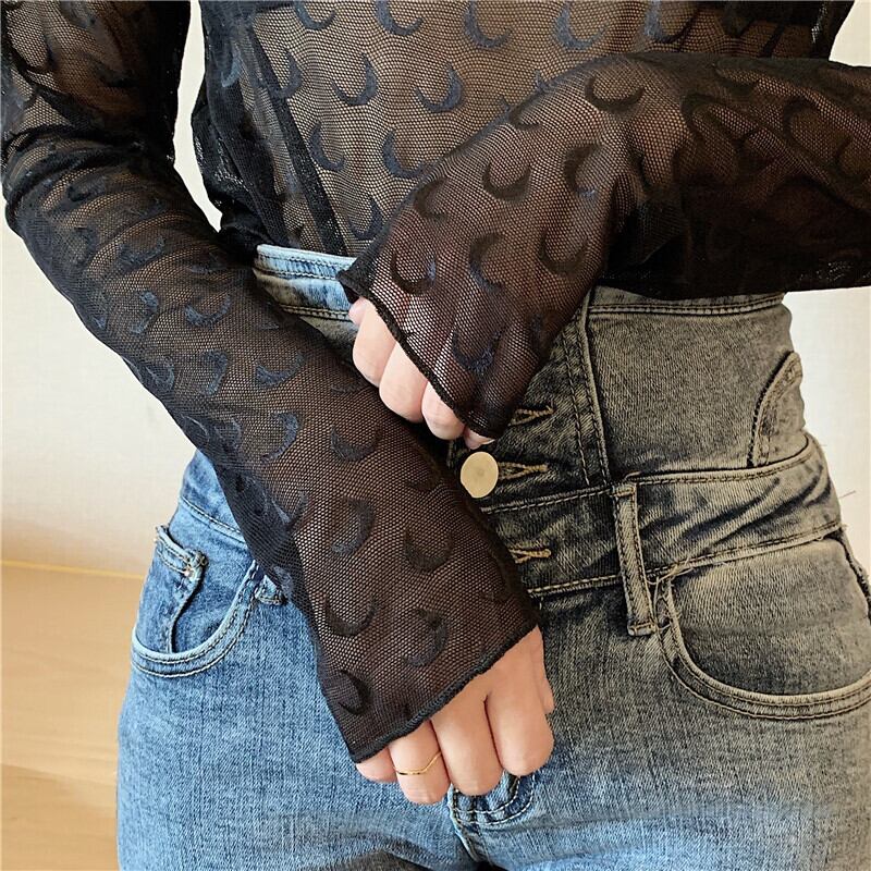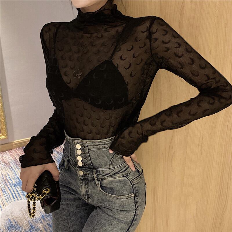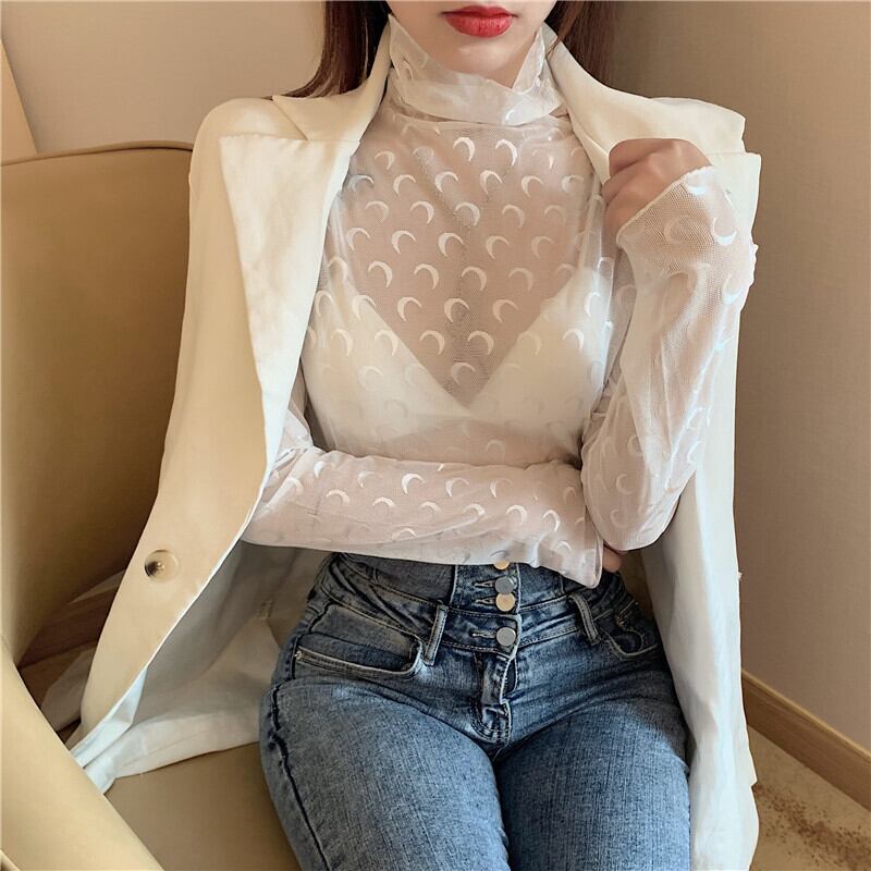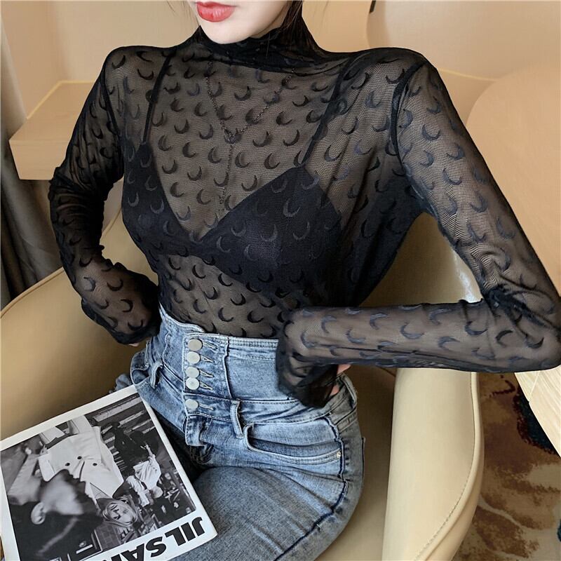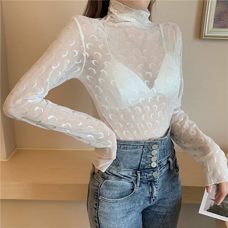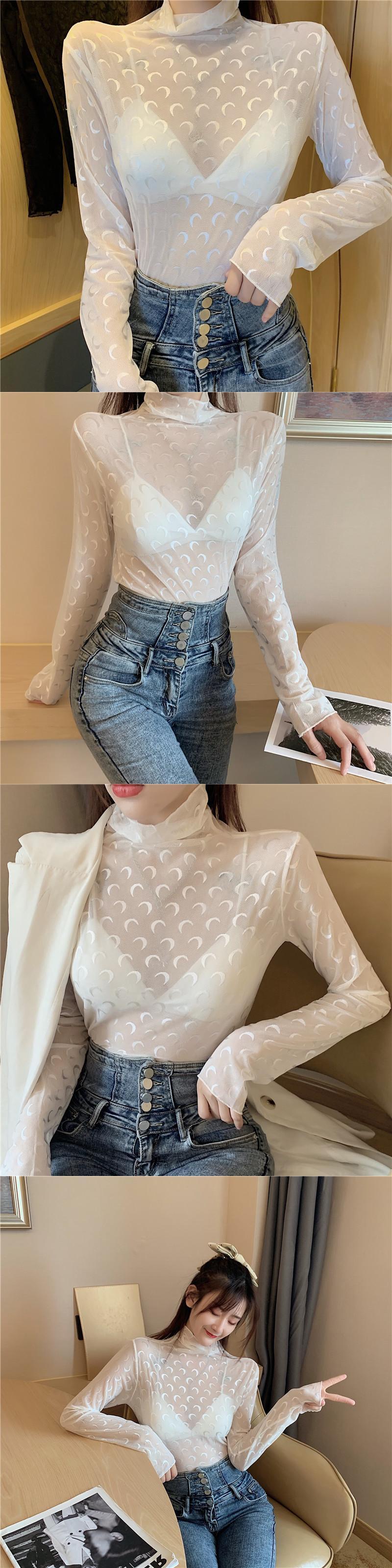 メッシュカラーブラウス レディーススプリングカジュアルレースシャツ ロング 春物 YY-ファッション2726599441