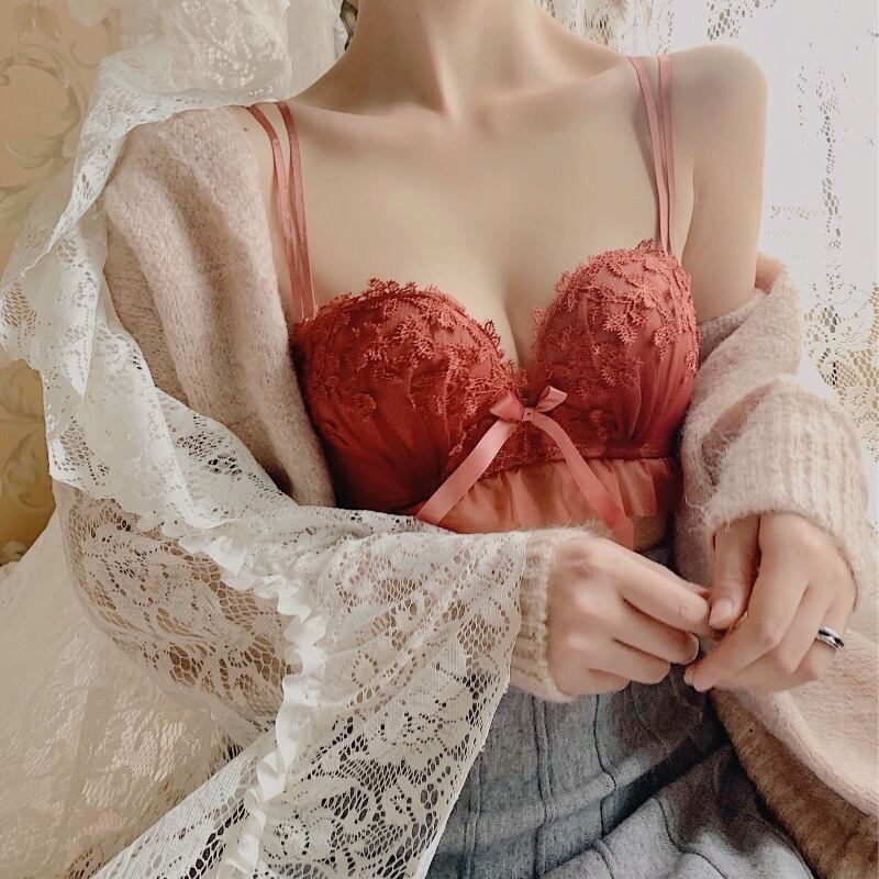 スプリングリング ブラ レースバックセット レディース レッド 春物 アジャスタブル 指輪 YY-ファッション81849189940