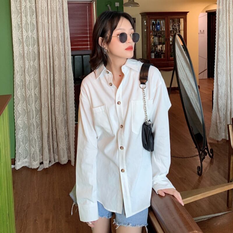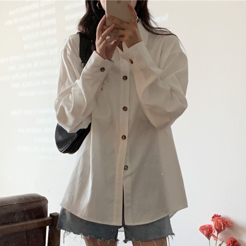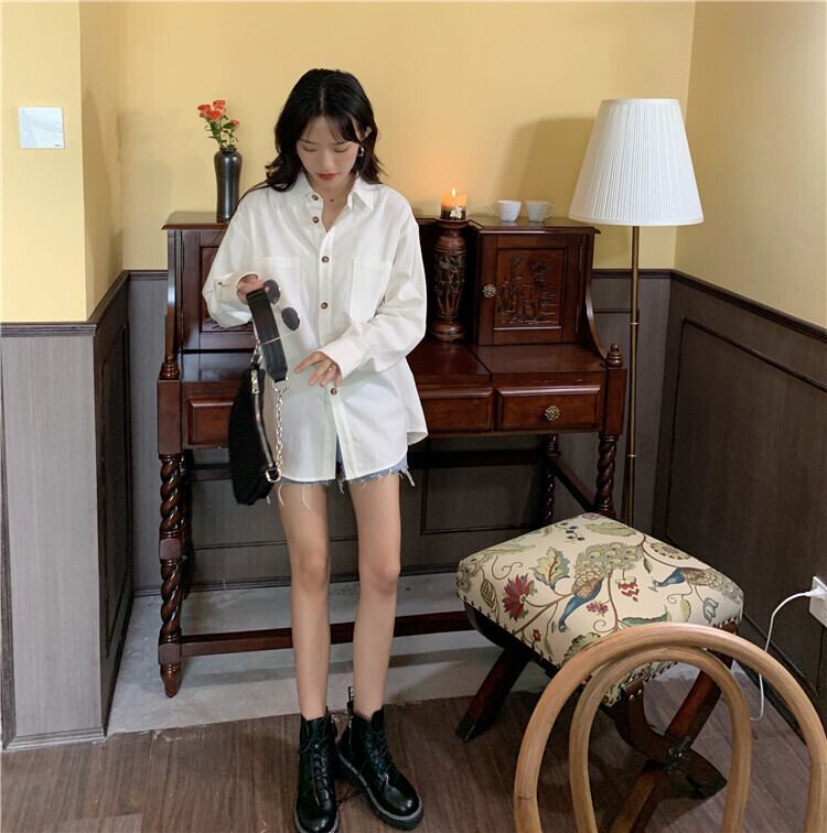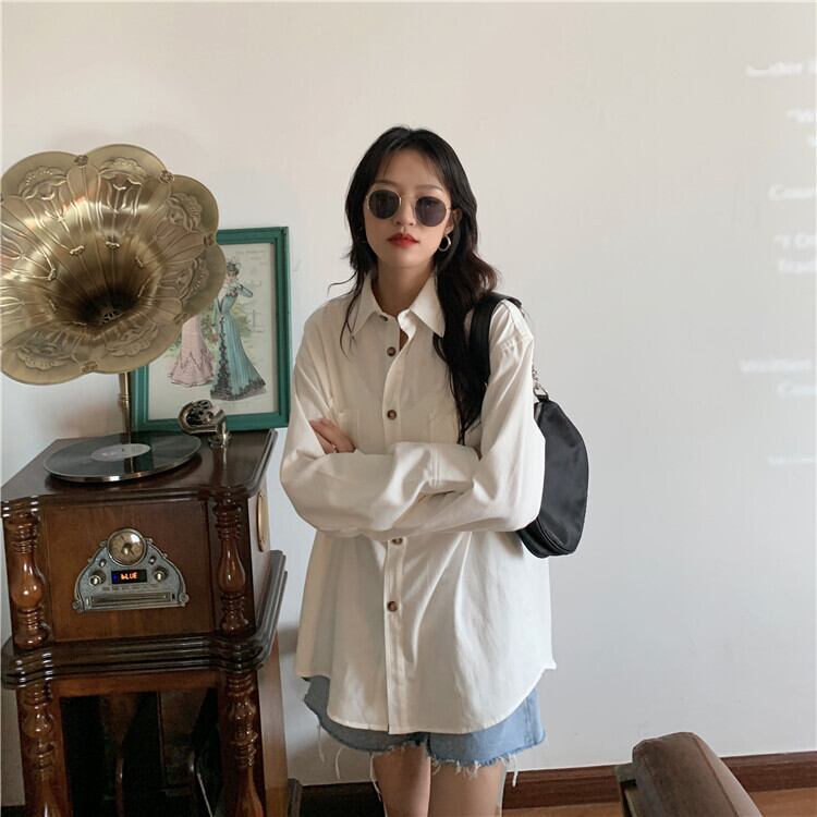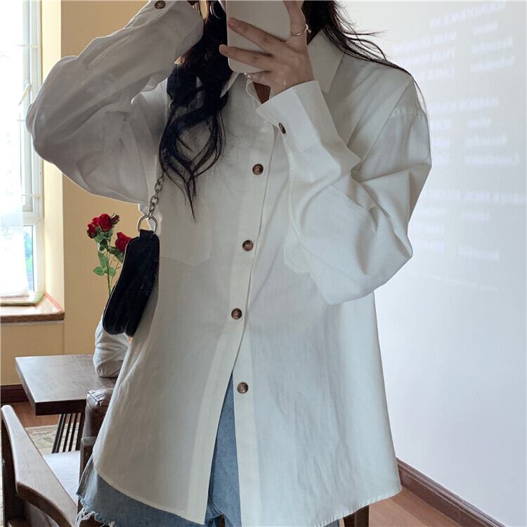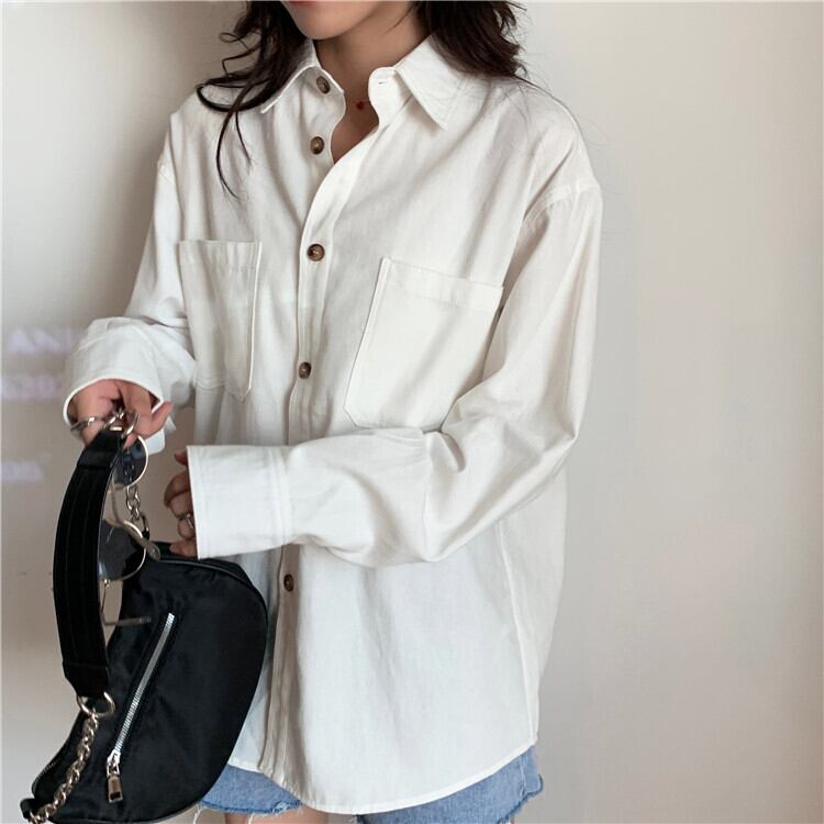 ホワイトルーズスタンダードスタイルシャツ スプリング ロング レトロ 春物 YY-ファッション55436233274