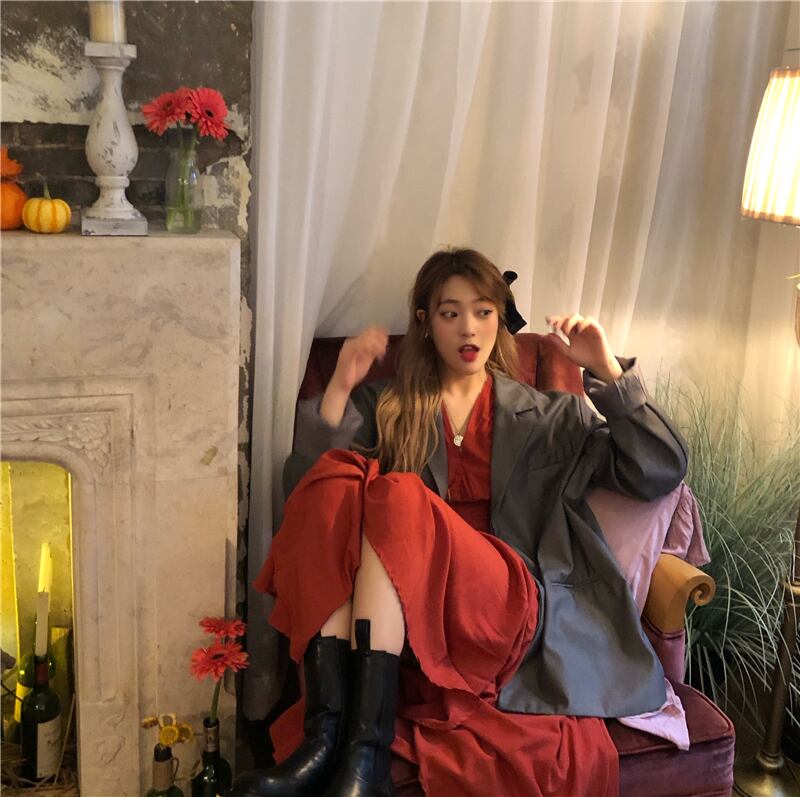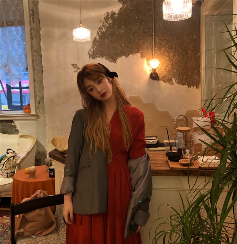 レッドスタンダードウェストドレス スタイル薄手スカート レトロ YY-ファッション32991190520
