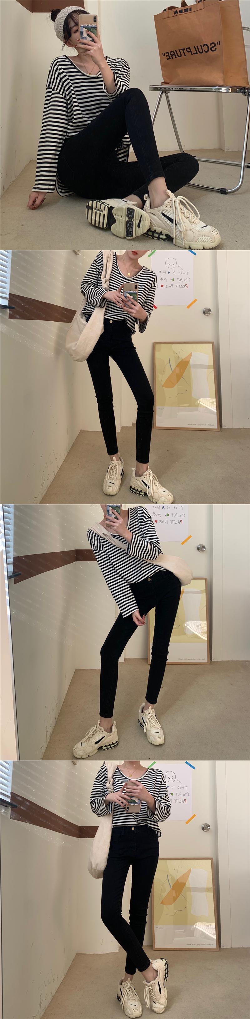 ウェストジーンズ パンツ レディースオータムウィンターブラック 秋物 冬物 YY-ファッション44758933711