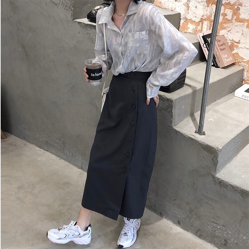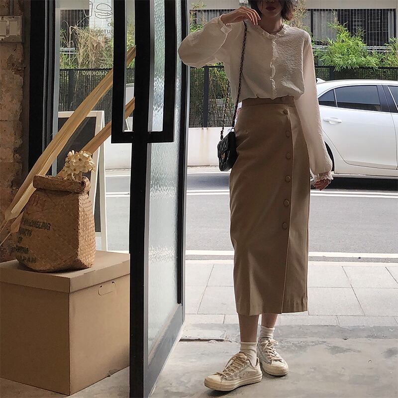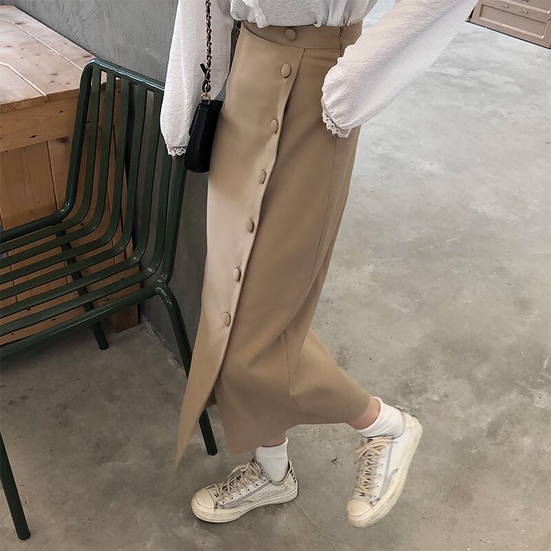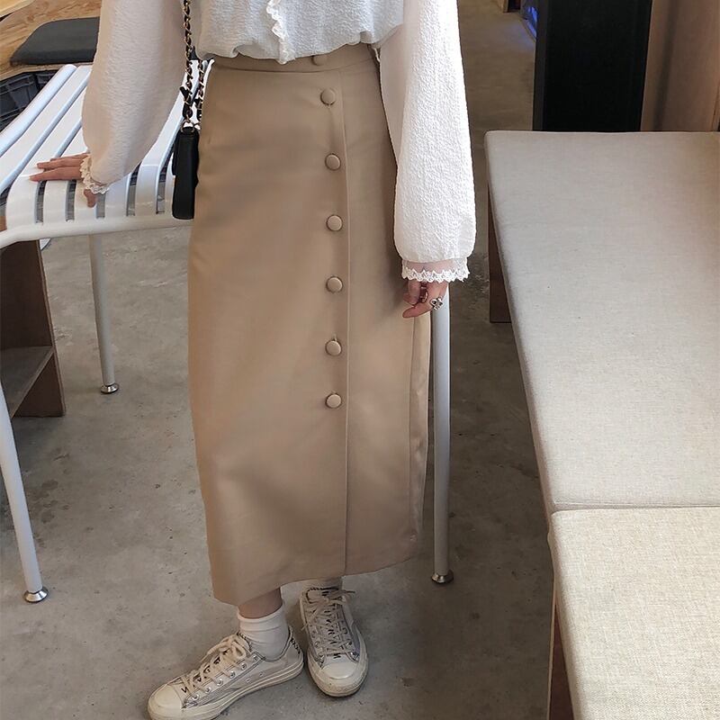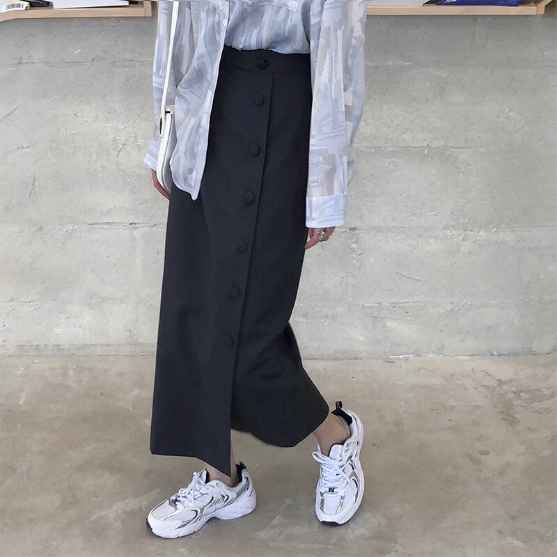 ハイウェストスリムロングスカート スプリングソリッド カラーバックルレディース 春物 ソリッドカラー YY-ファッション75550880385