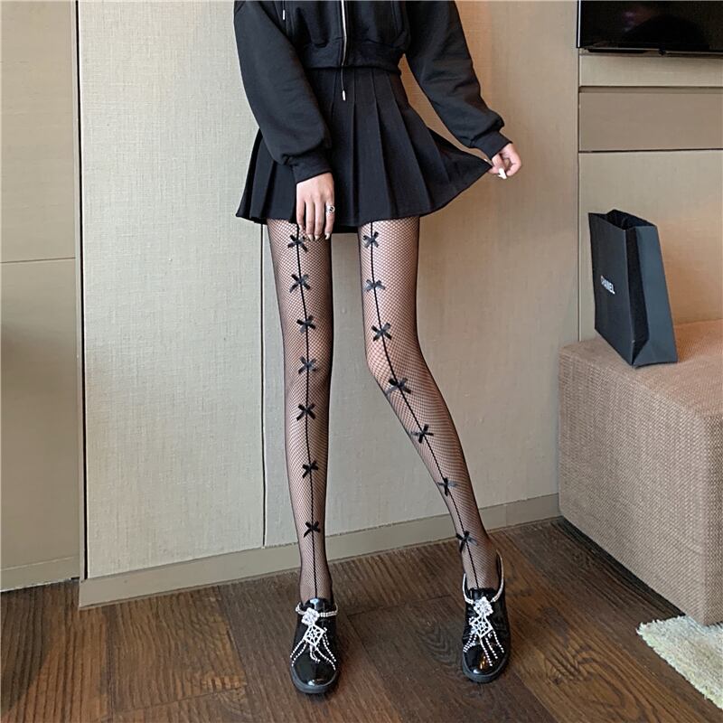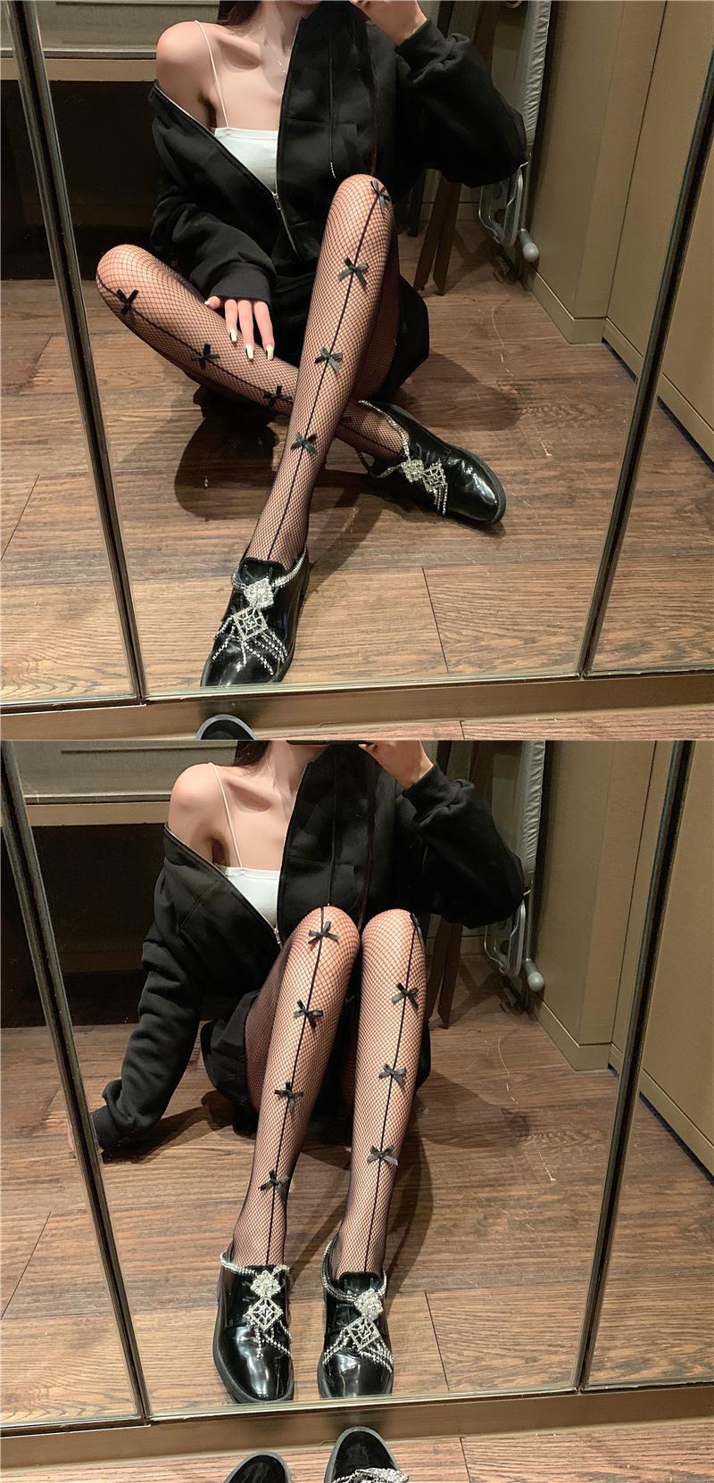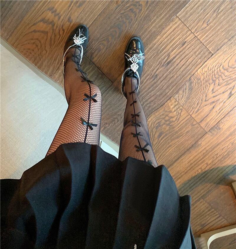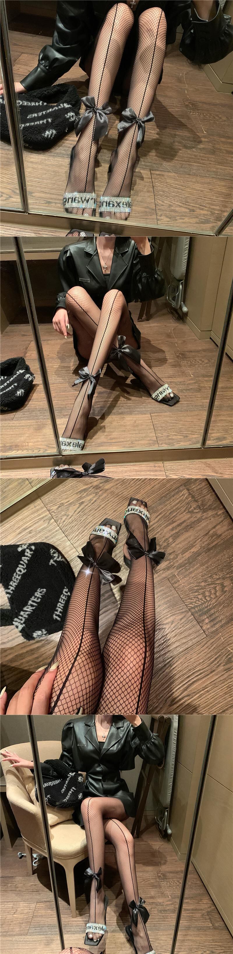 ストッキング 薄手ネットバックソックス リボン 大人ガーリー スウィート キュート カジュアル タイツ YY-ファッション11342599282