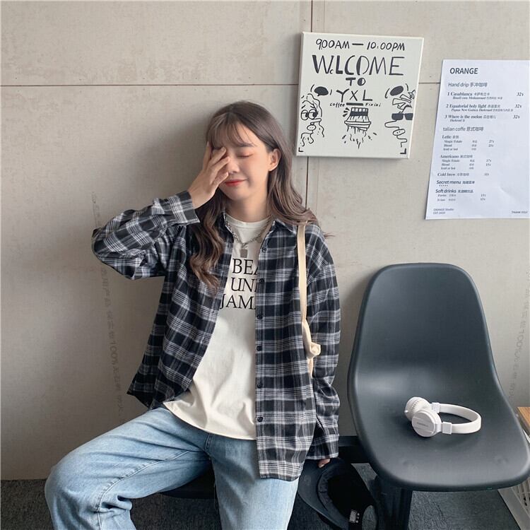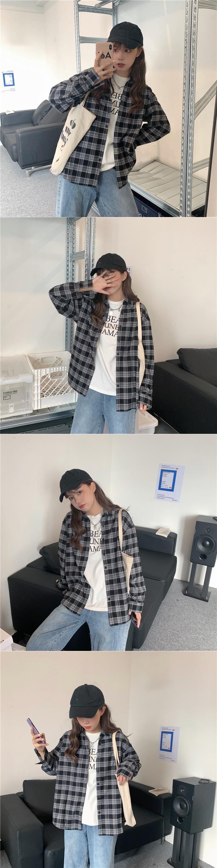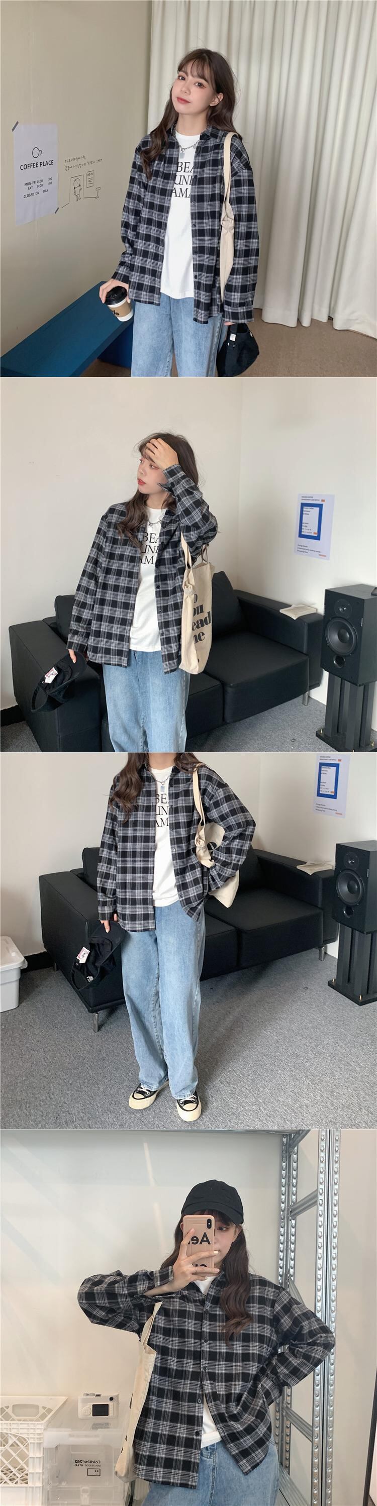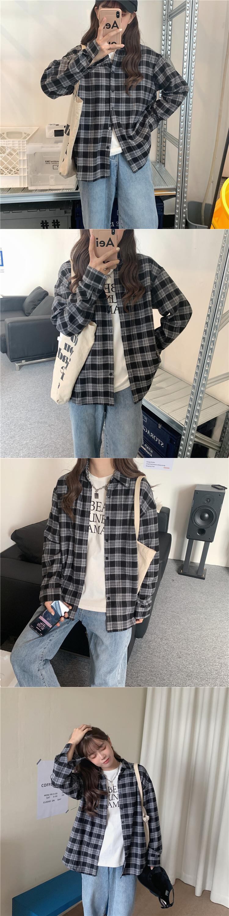 スプリングカジュアル格子柄シャツ ジャケット ロング 春物 YY-ファッション59797155264