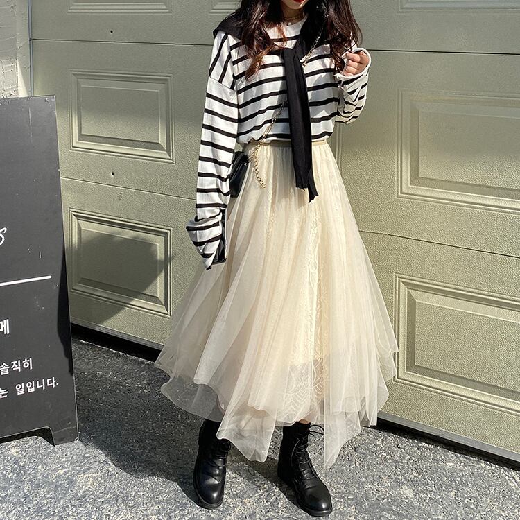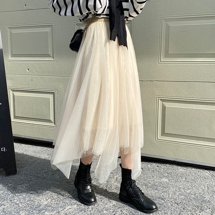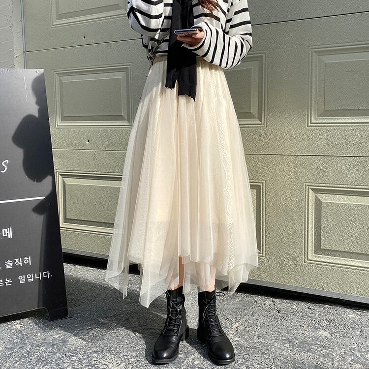 メッシュスカート オータムウィンターハイウェストウェストルーズ 秋物 冬物 YY-ファッション82791112643