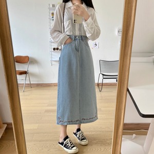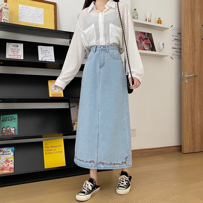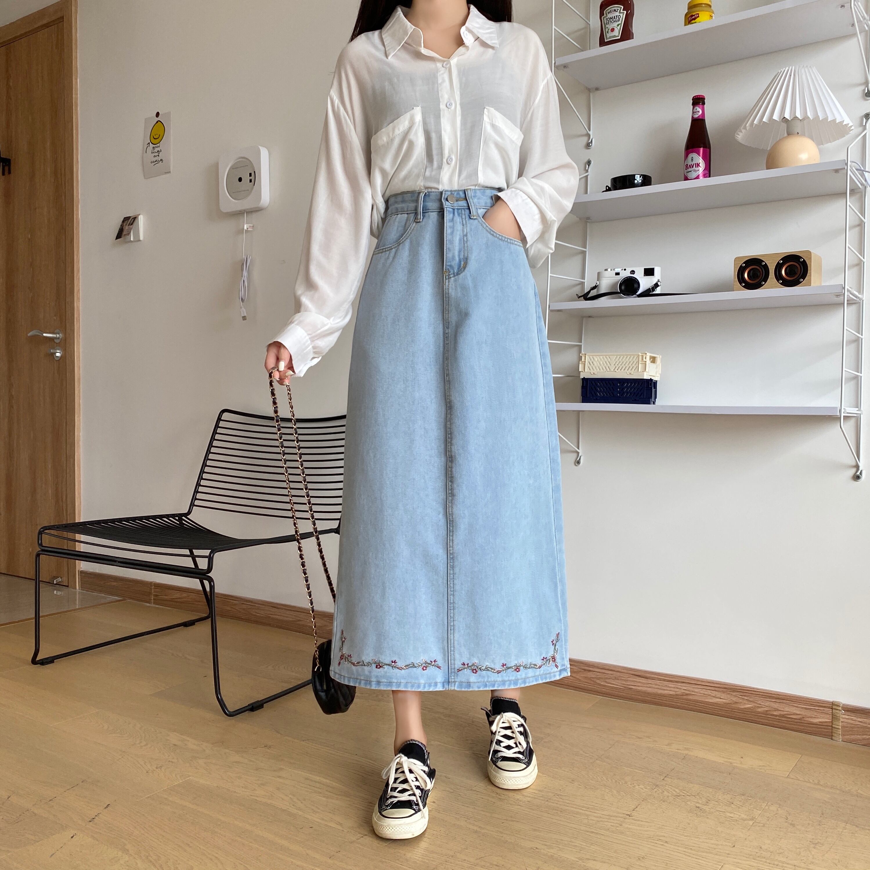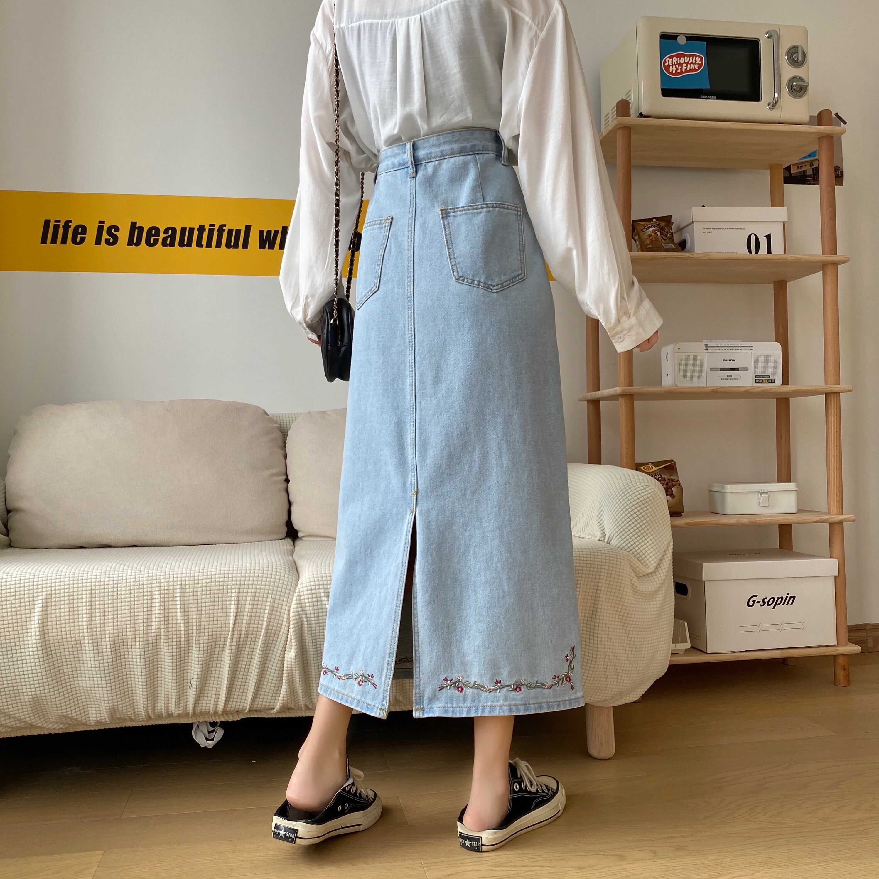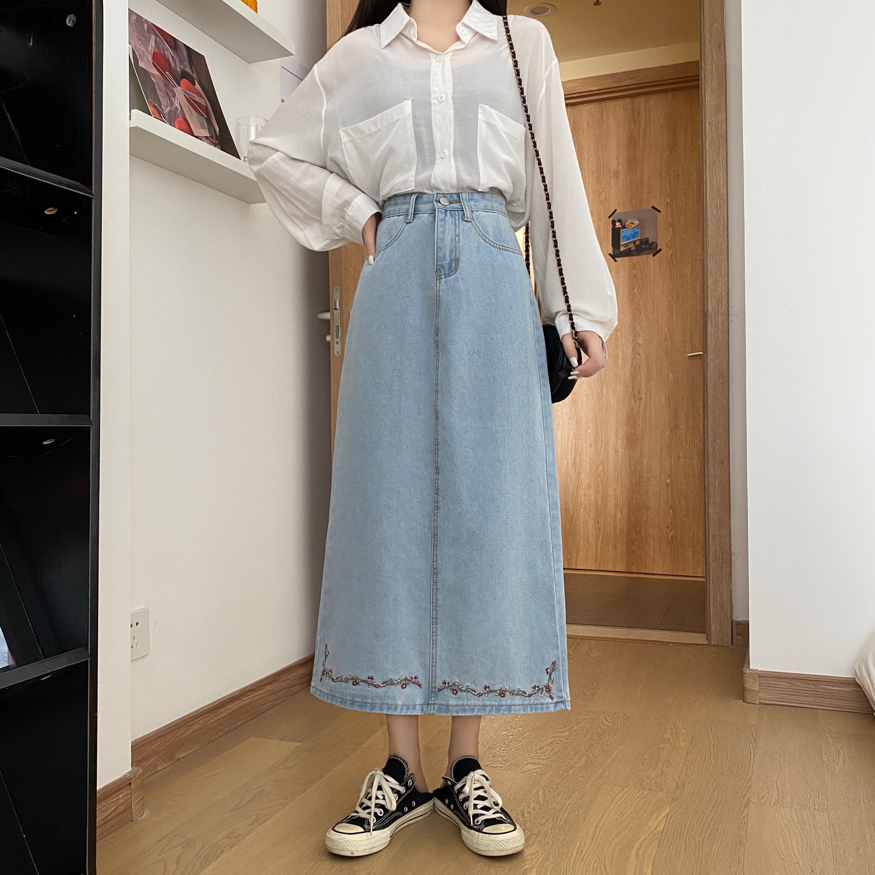 スタンダードハイウェストウェストスカート スプリングオータム レッド レトロ 刺繍 春物 秋物 YY-ファッション36224213594