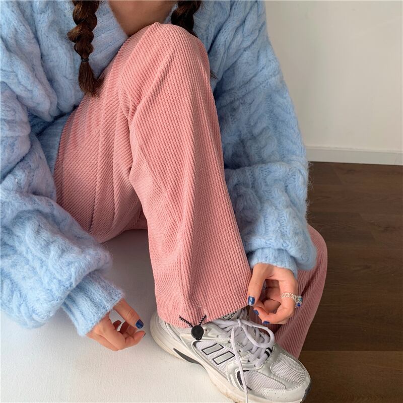 ウールニットセーター Vネックジャケット ハイウェストウェストスリムワイドレッグパンツ ワイドパンツ YY-ファッション78408574304
