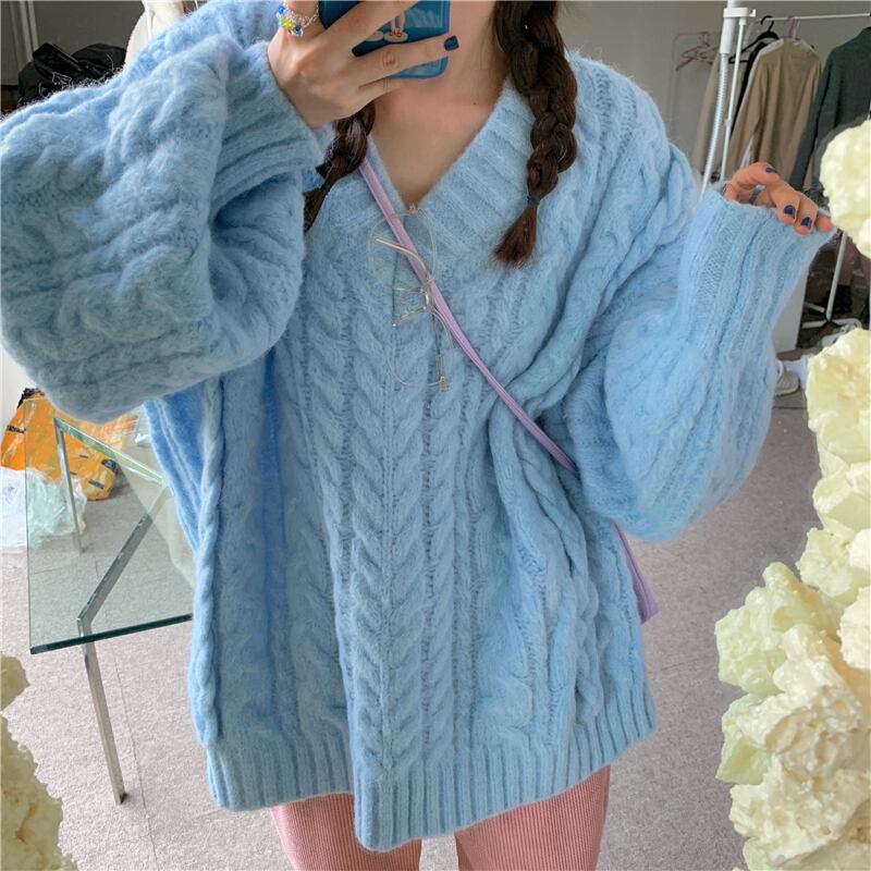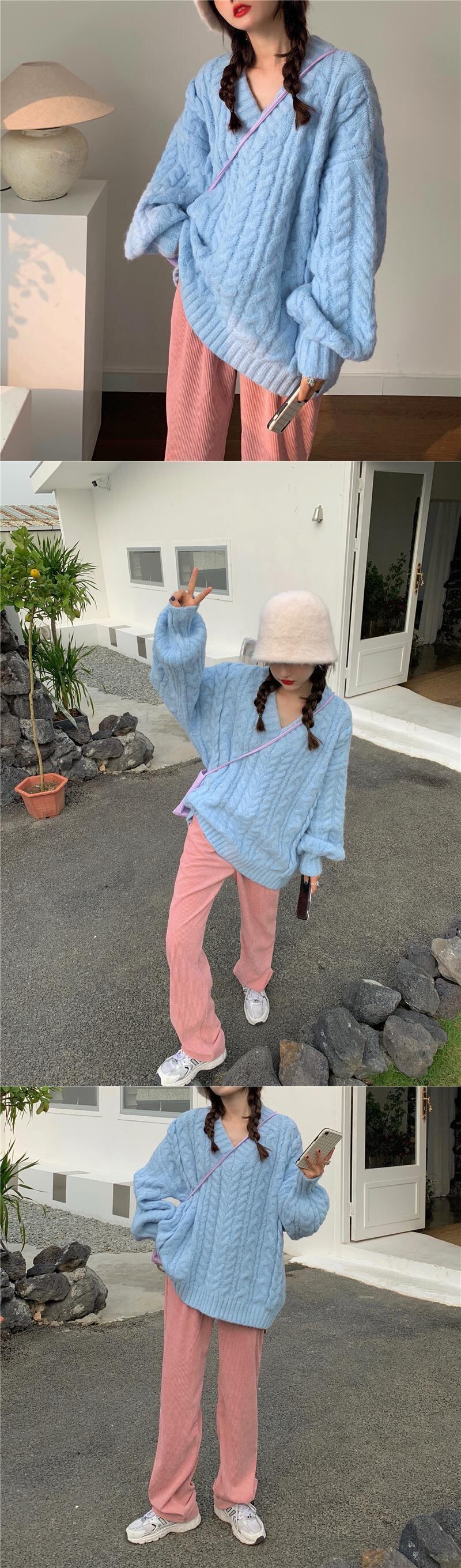 色:青いセーター,ピンクのパンツ