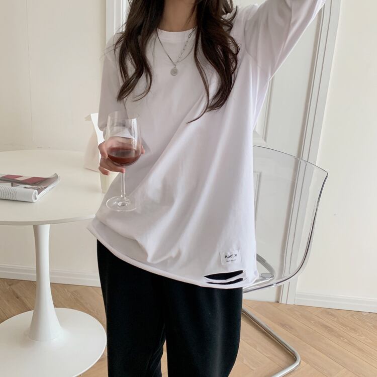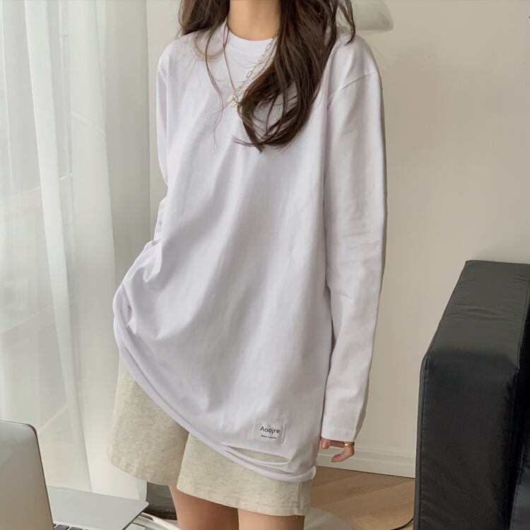Tシャツ シャツ ルーズホワイトスプリングトップス ロング 春物 YY-ファッション23913711465