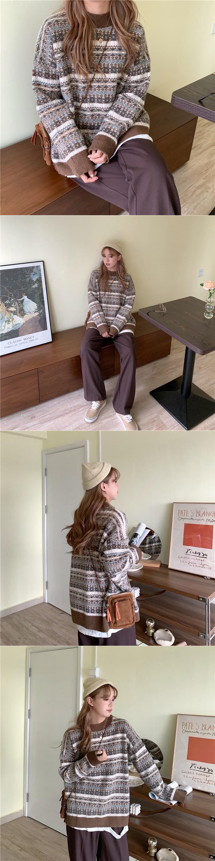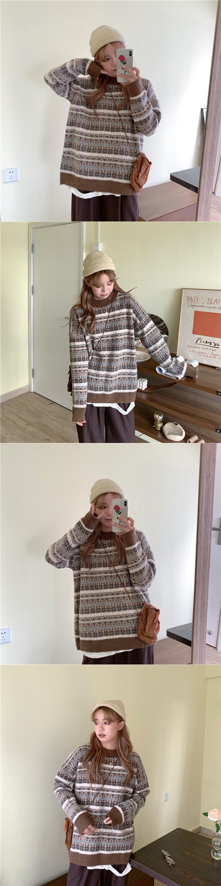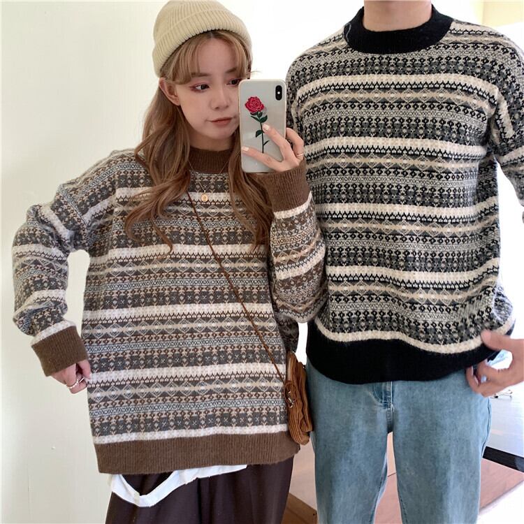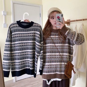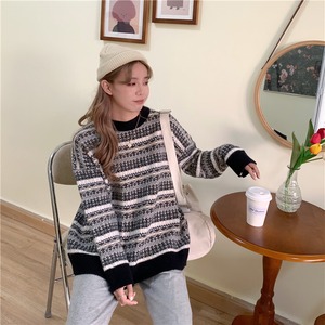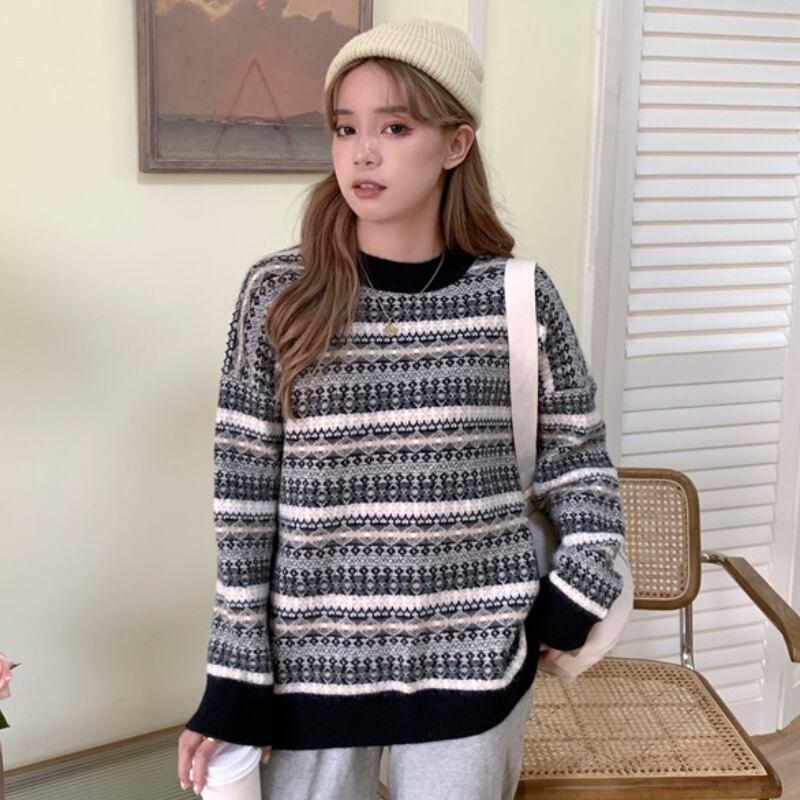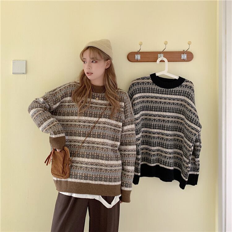 スタンダードジャカードセーター ルーズスタイルオータムウィンタープルオーバー レトロ 秋物 冬物 YY-ファッション75879311639