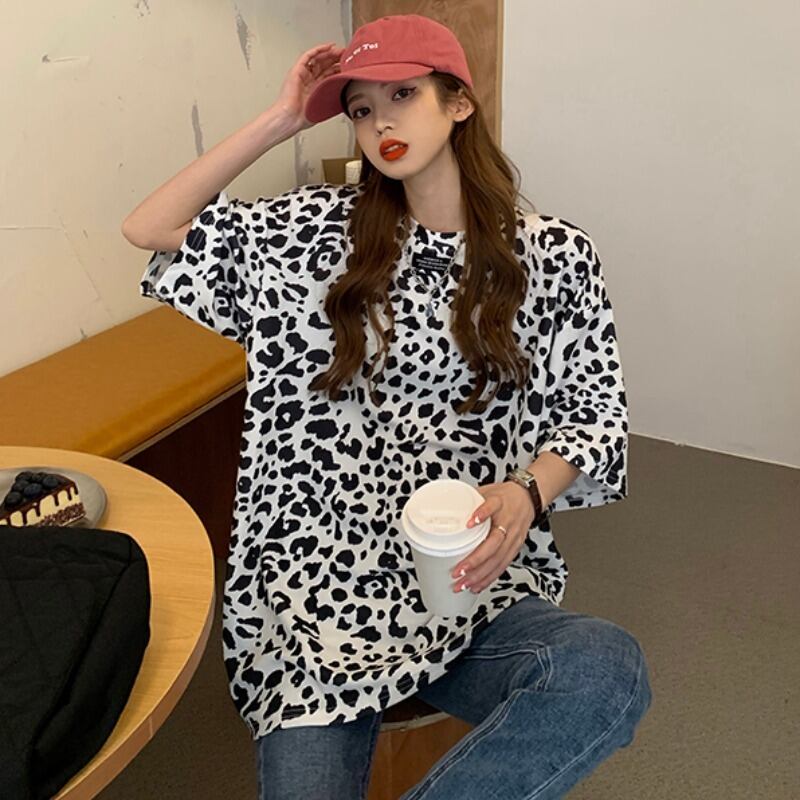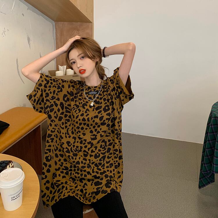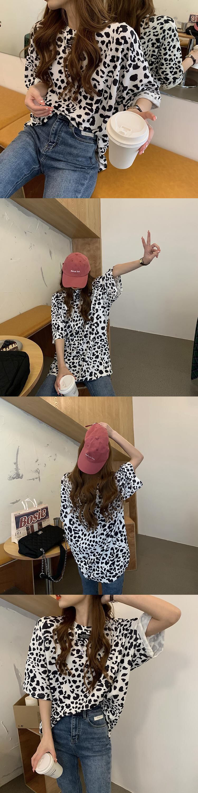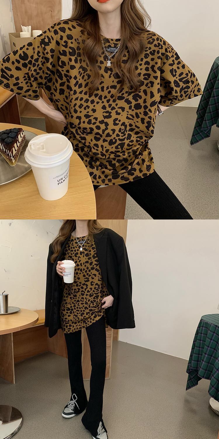 スタンダードレオパードプリント柄Tシャツ シャツ レディーススプリングスタイルルーズトップス レトロ 春物 YY-ファッション96506138844