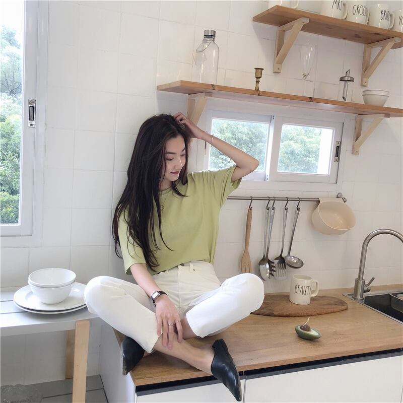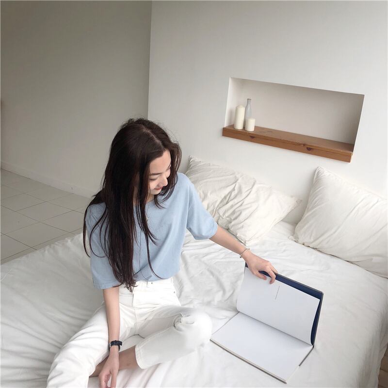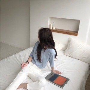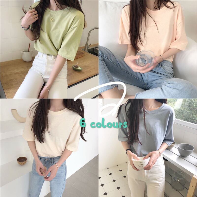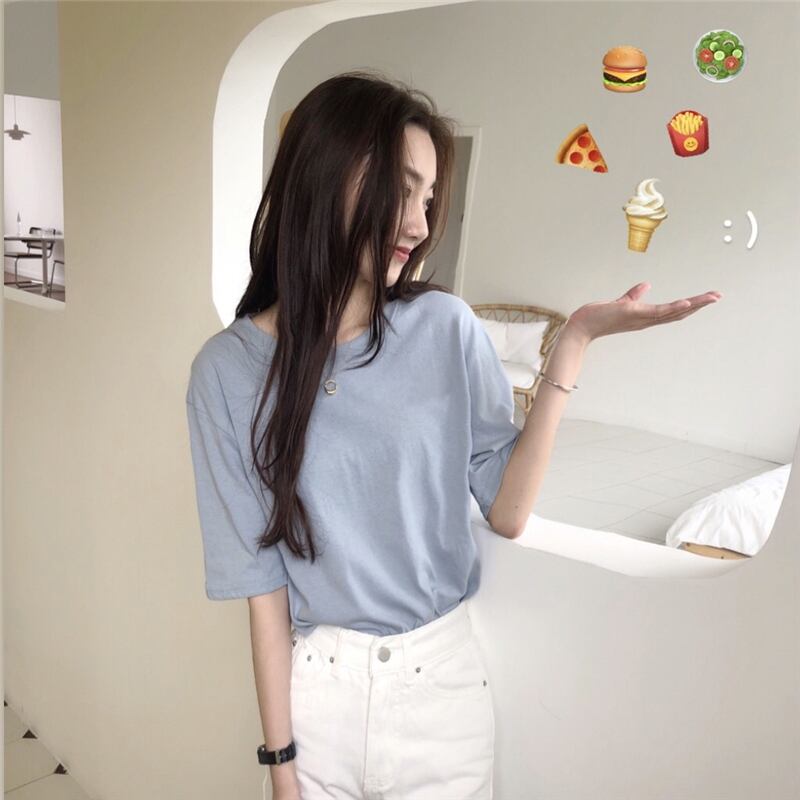 スプリングラウンドネックルーズカラーTシャツ トップス 春物 Oネック ピュア YY-ファッション34246406080
