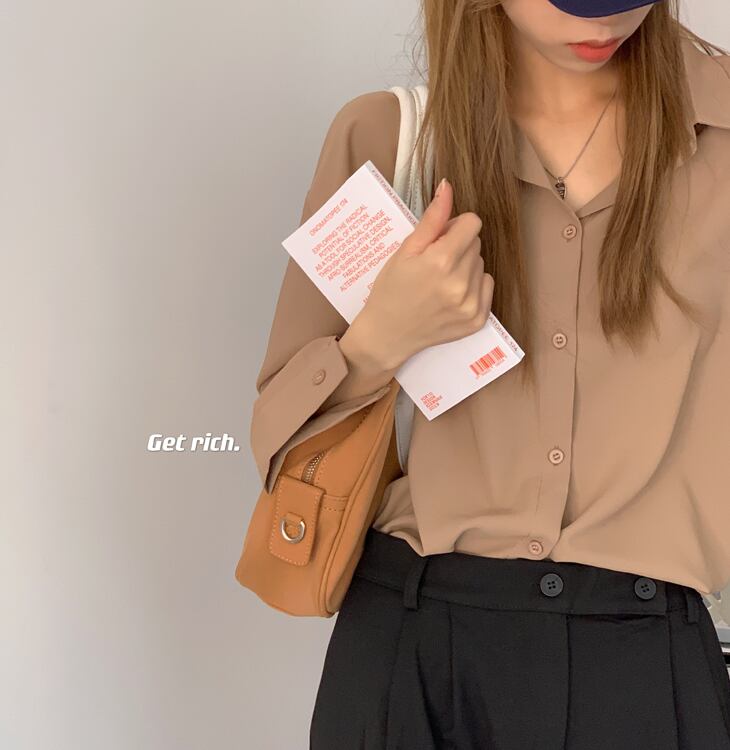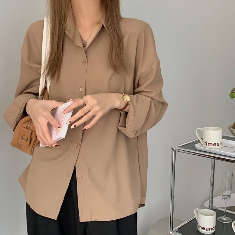 ルーズシャツ ソリッド カラーブラウス スプリング ロング 春物 ソリッドカラー YY-ファッション42293689675