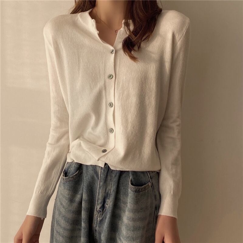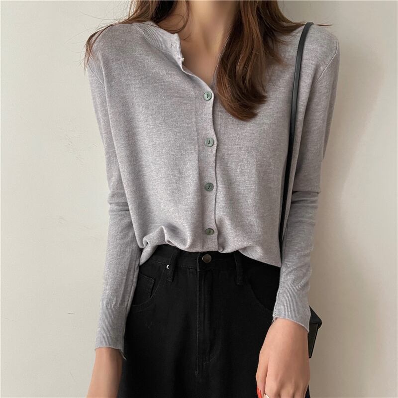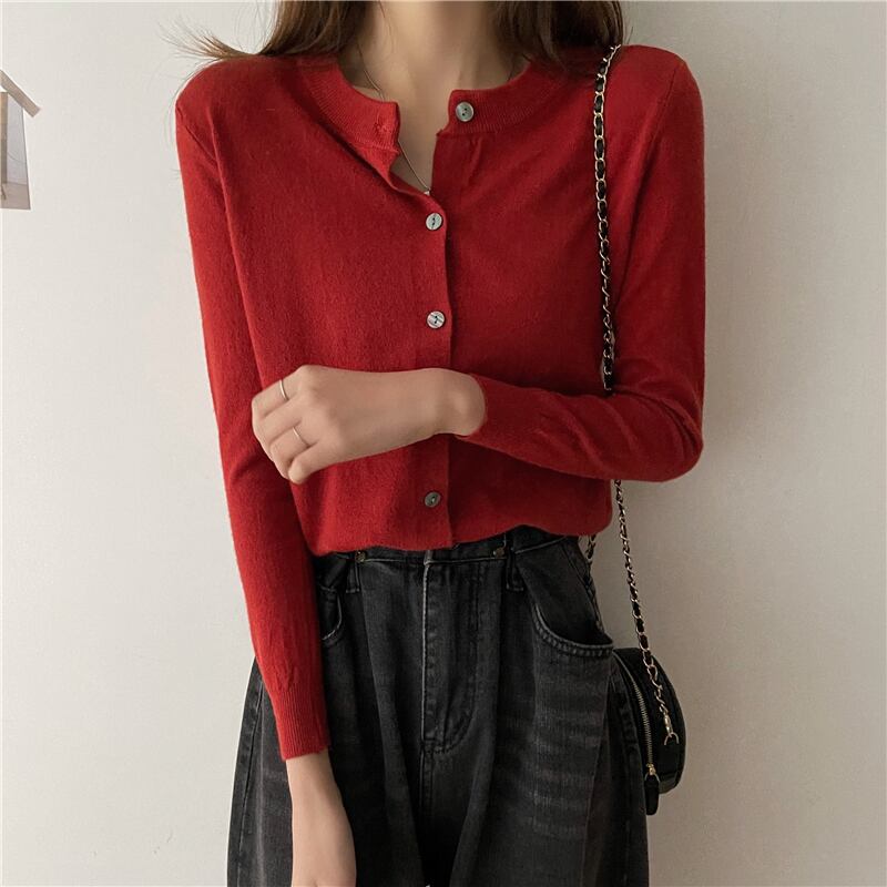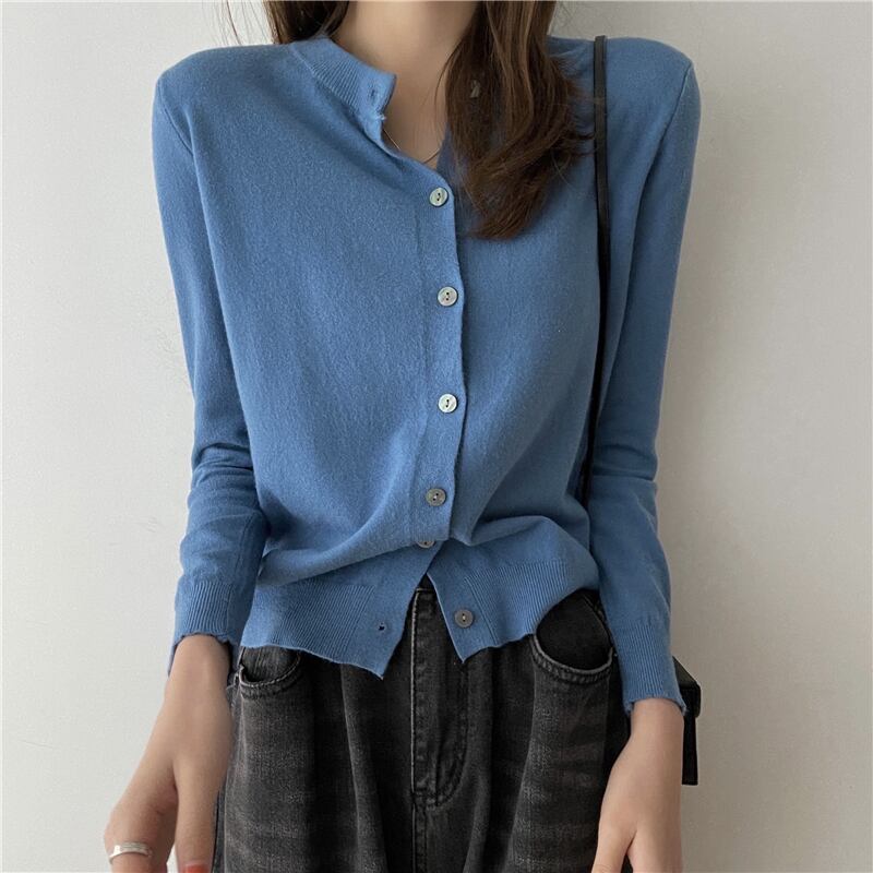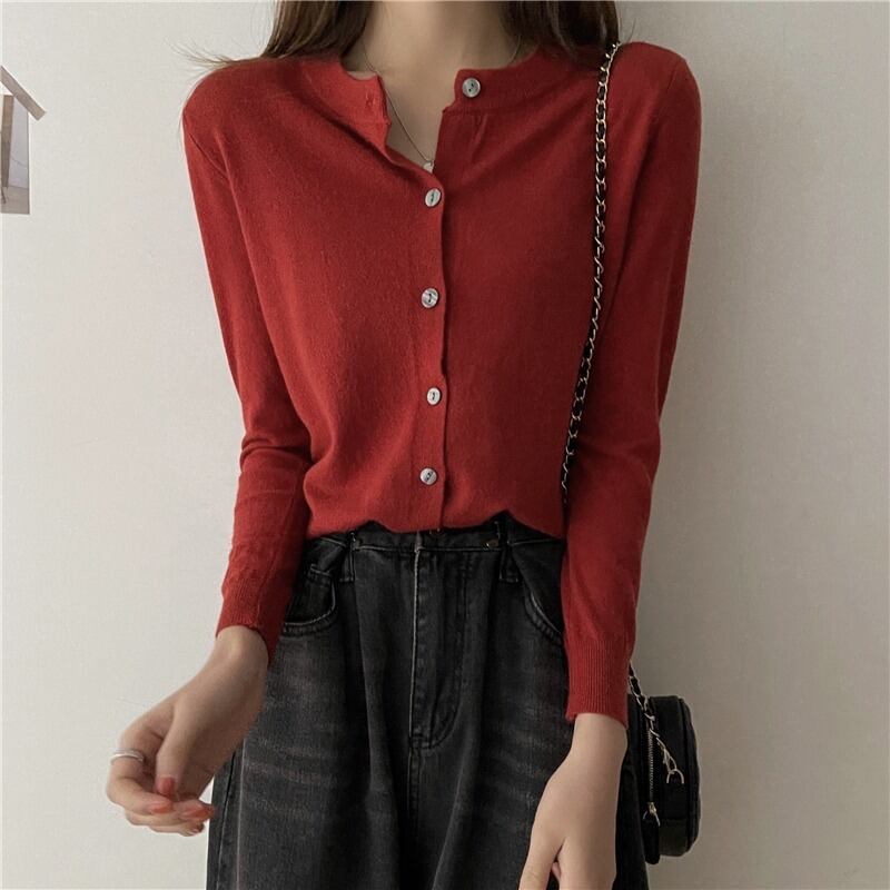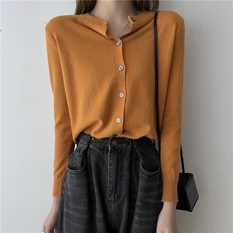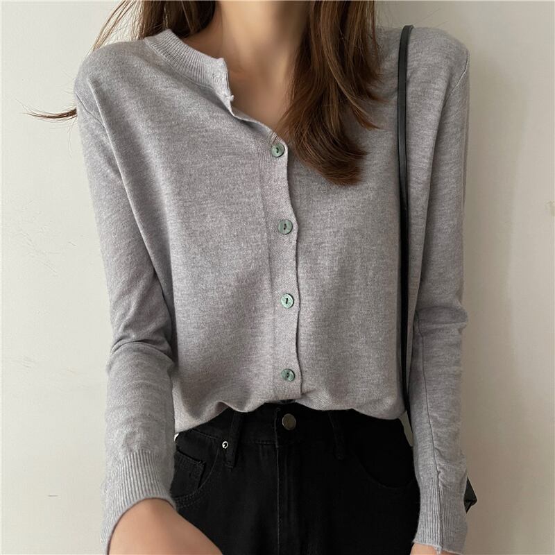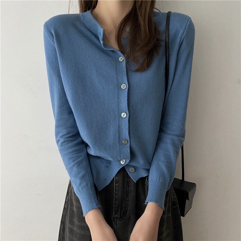 スプリングスタイルシャツ ベーシックソリッド カラーラウンドネックニットカーディガントップス ロング 春物 Oネック ソリッドカラー YY-ファッション52436716784