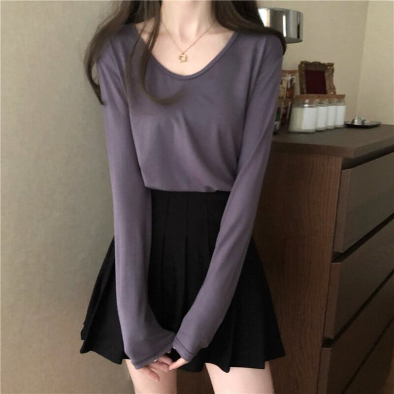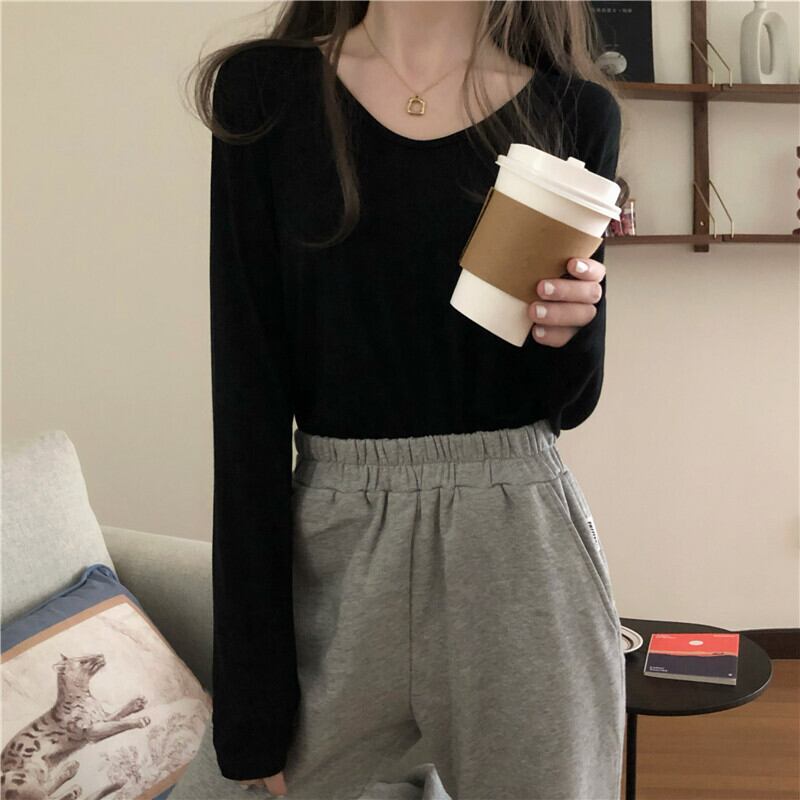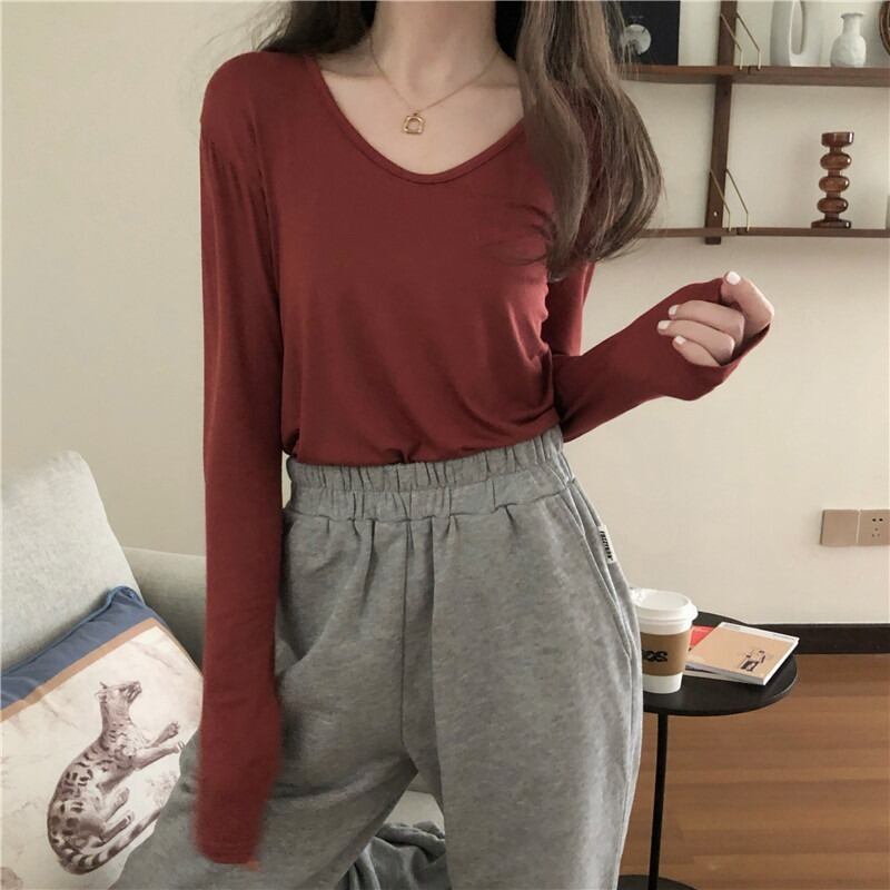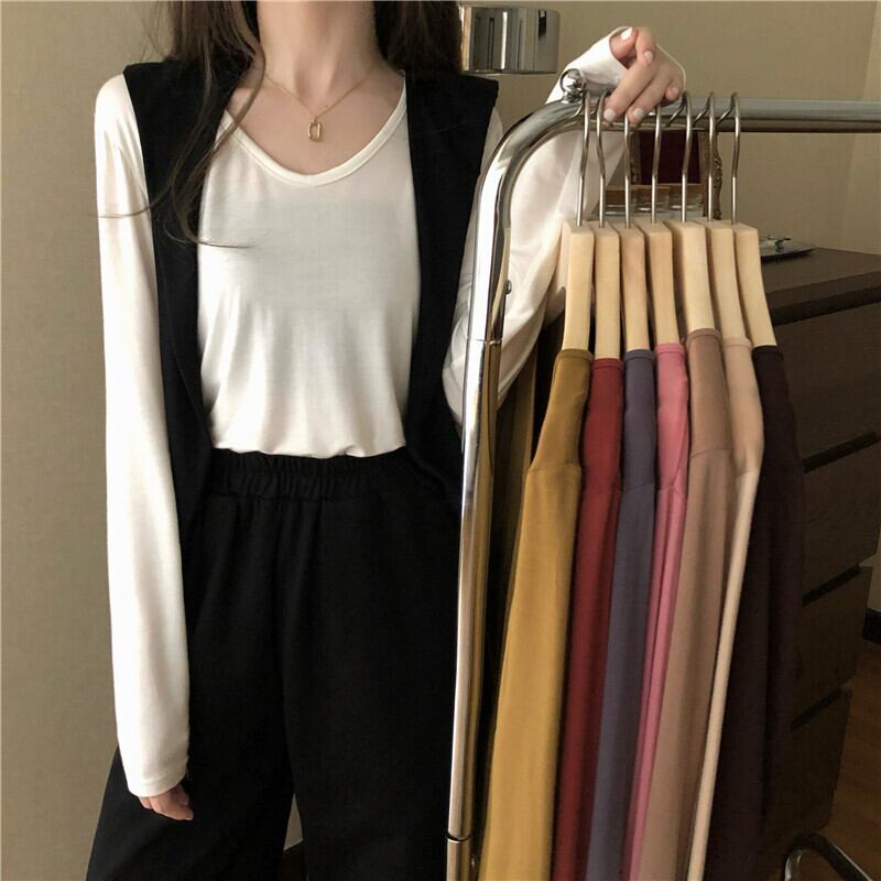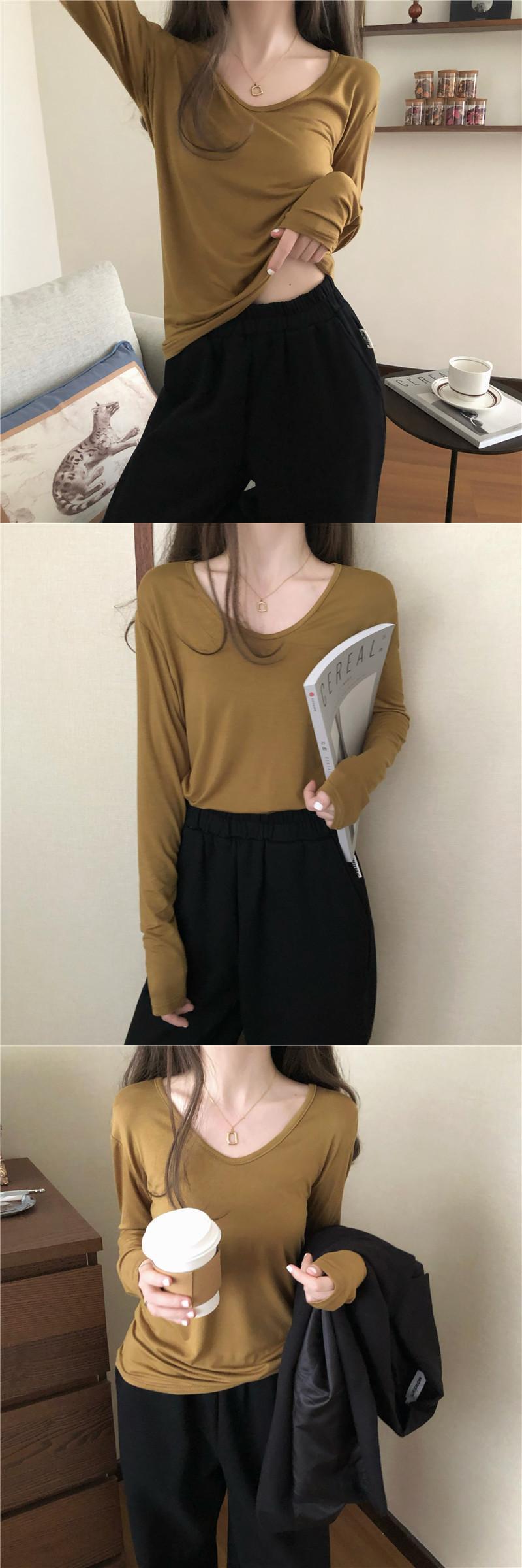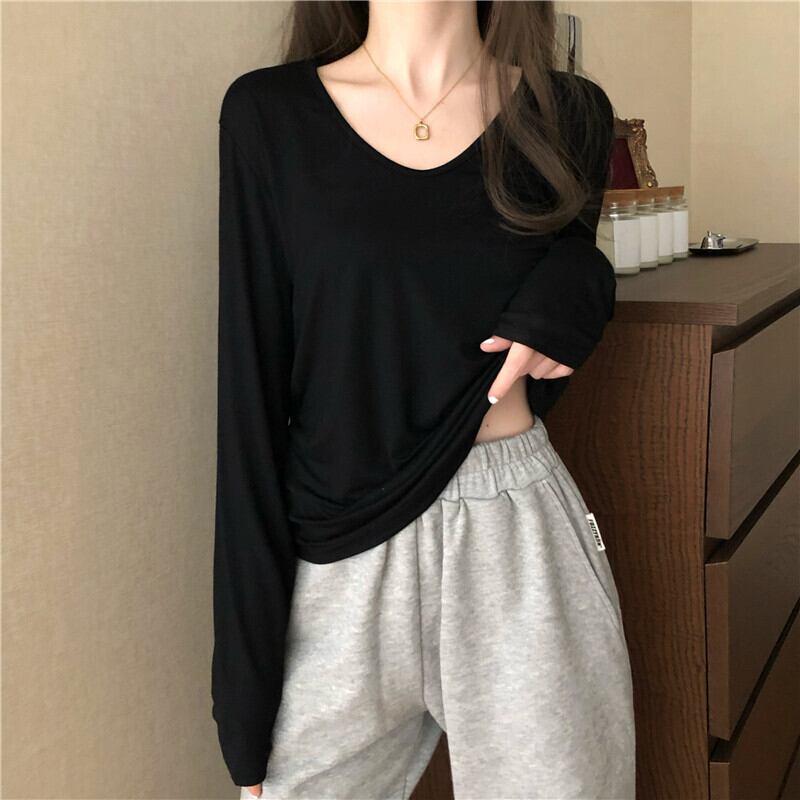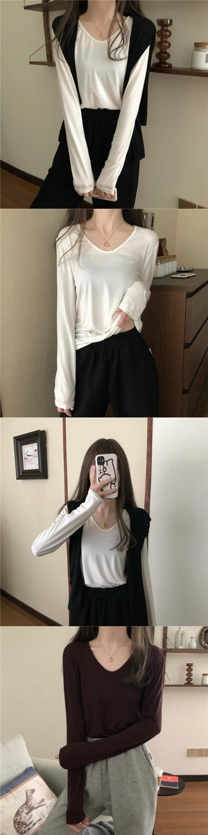ブラックオータムウィンタールーズVネックトップス ロング 秋物 冬物 Tシャツ YY-ファッション84078711944