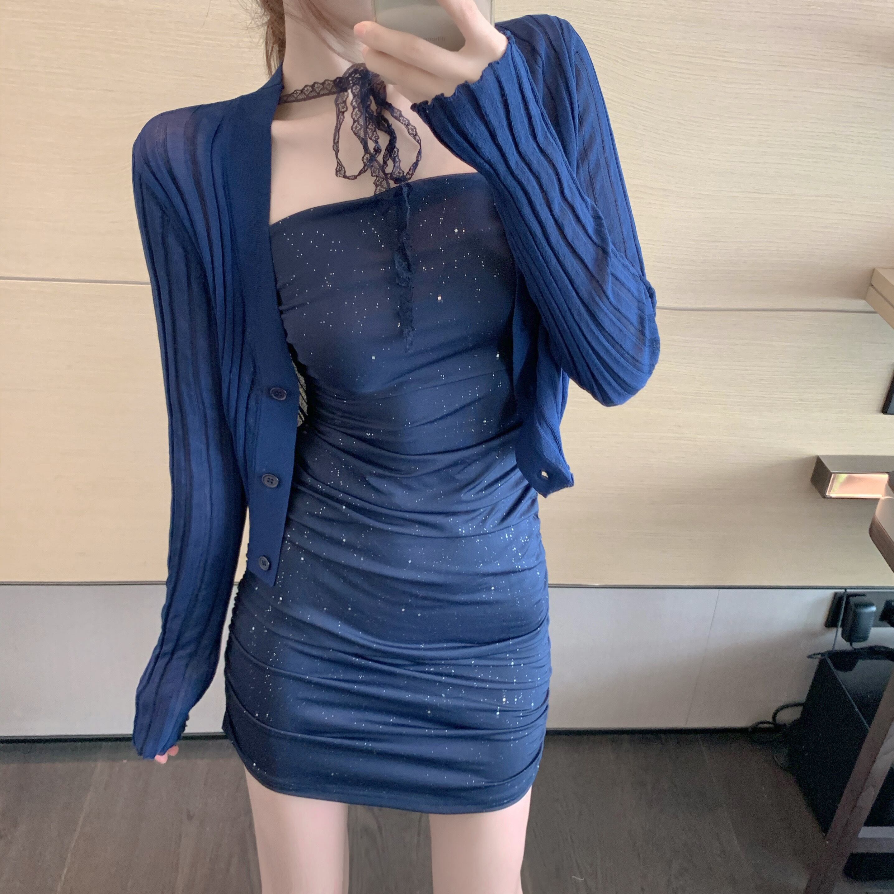 ニットカーディガンジャケット ショートスリムセーター レディースサマー薄手トップス ロング 夏物 YY-ファッション4888970493