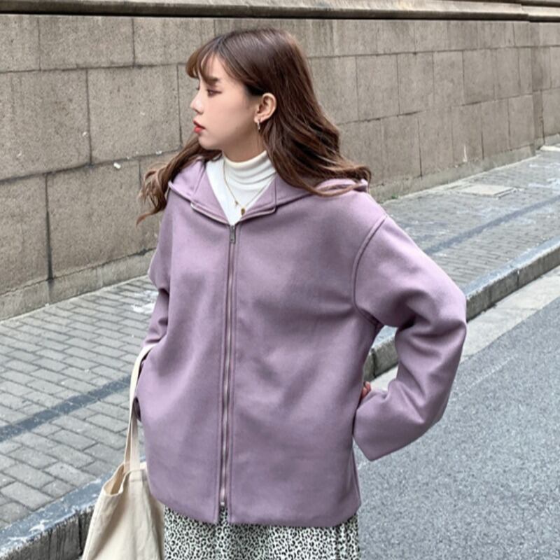 スプリングルーズソリッド カラートップス フードカーディガンジャケット レディース ロング コットン 春物 ソリッドカラー YY-ファッション74465937206