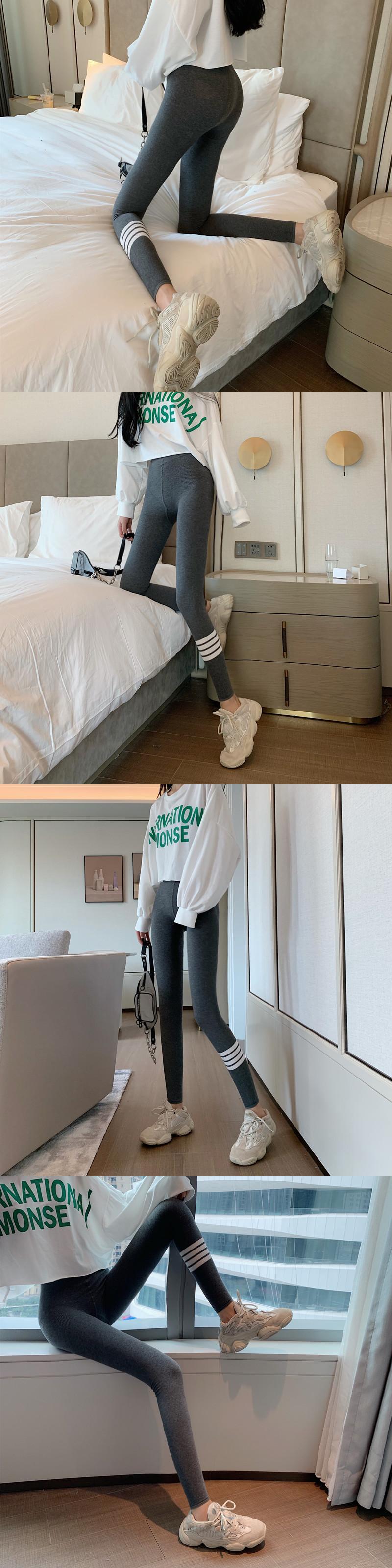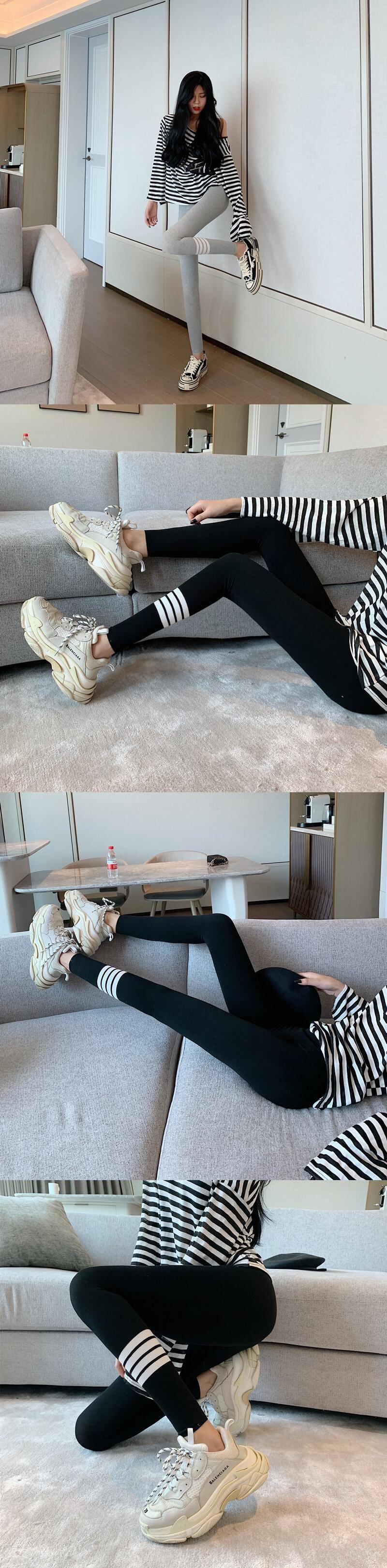 レギンス ストライプベルベットブラックスプリングオータムパンツ 春物 秋物 YY-ファッション27238242390
