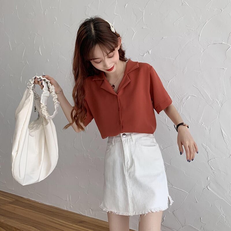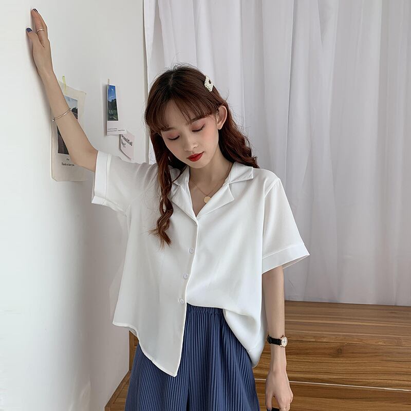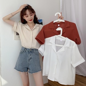 スプリングサマーシフォンシャツ ベーシックルーズカラー半袖スリーブ ショート ハーフスリーブ 春物 夏物 YY-ファッション73850919606