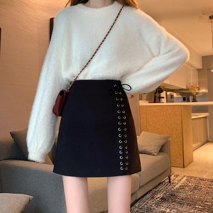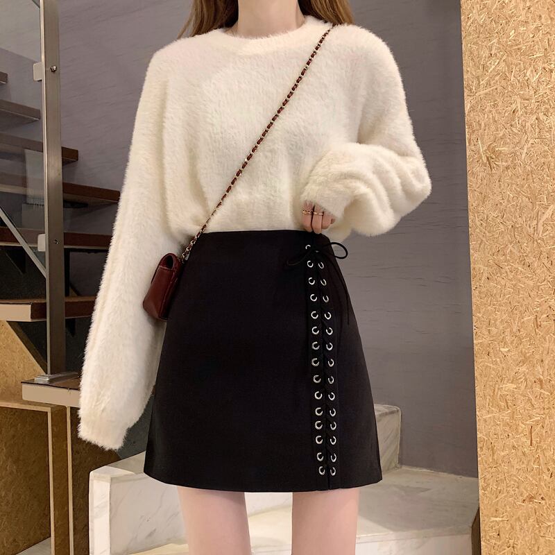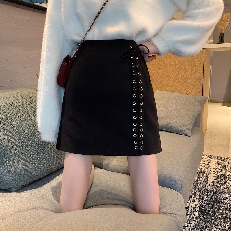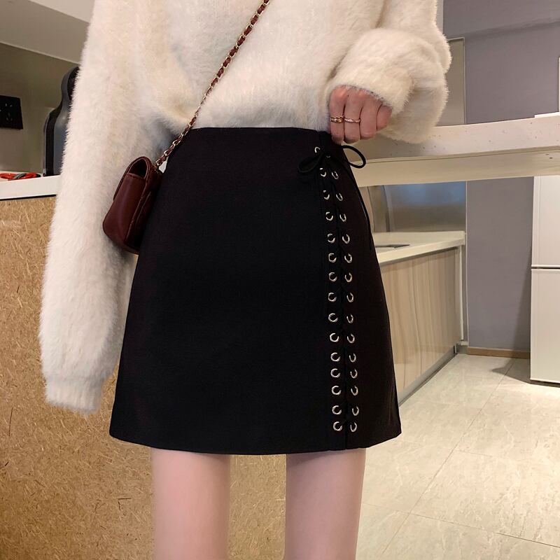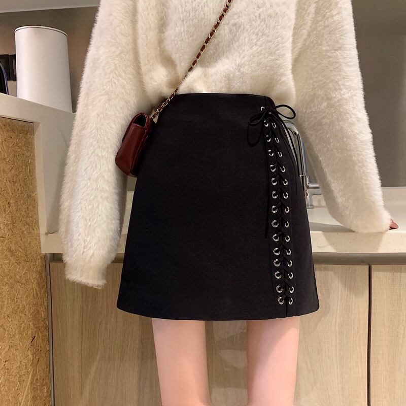 ウェストブラックスカート オータムウィンターAラインショートスタンダード レトロ 秋物 冬物 YY-ファッション29230375383
