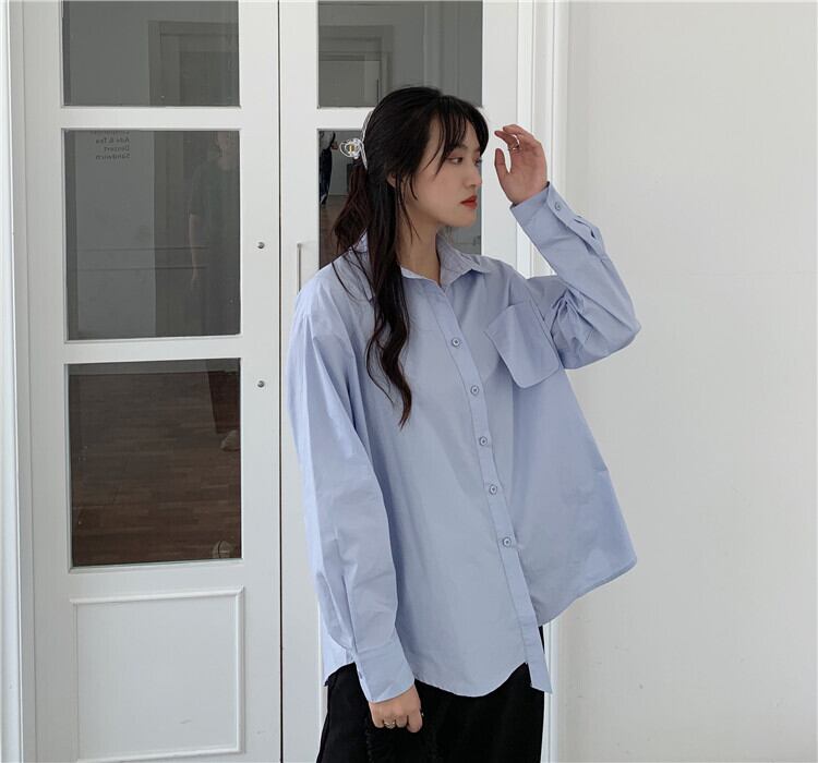 カジュアルルーズソリッド カラーシャツ スプリング薄手トップス ロング 春物 ソリッドカラー YY-ファッション84183242500