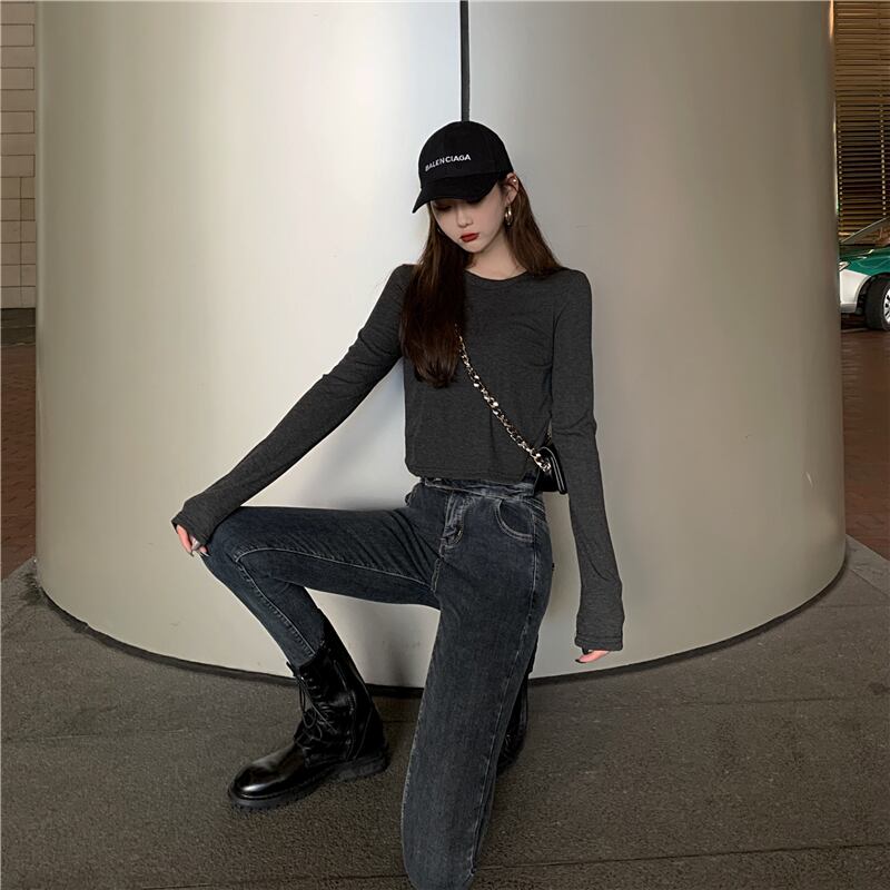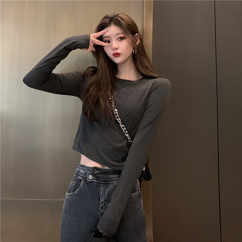 Tシャツ スプリングベーシックソリッド カラー薄手トップス ロング 春物 ソリッドカラー YY-ファッション40461416299