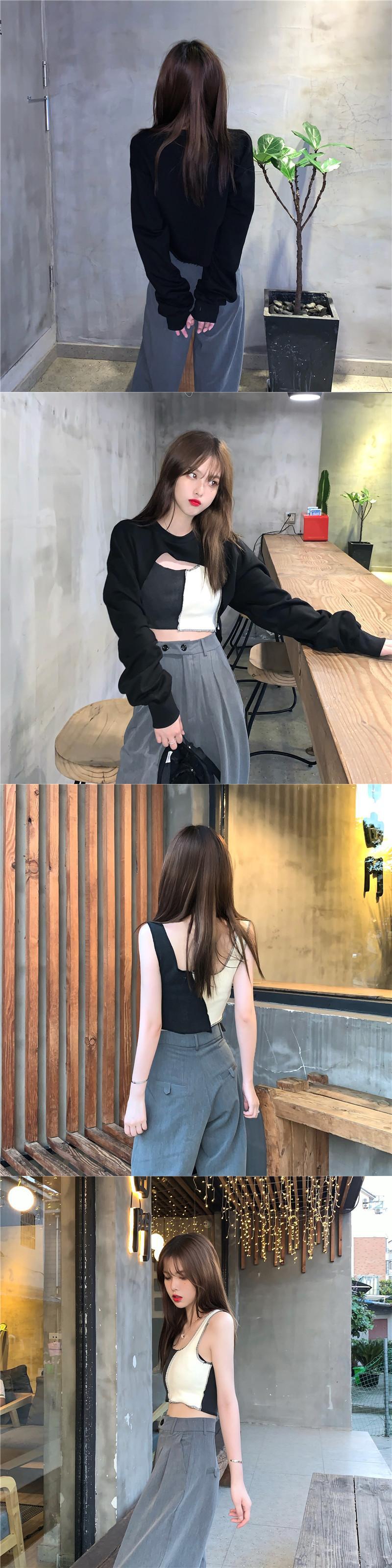 スプリングスタイルショートセーター カラーレディース ロング 春物 ステッチ YY-ファッション96381284193
