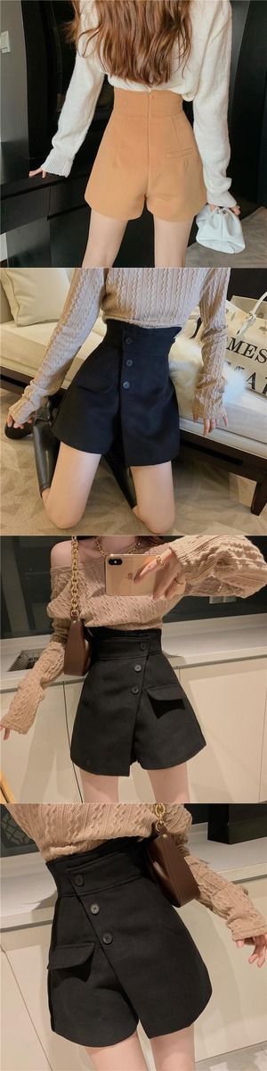 ショートスカート ハイウェストウェストソリッド カラーAラインパンツ スプリング 春物 ソリッドカラー YY-ファッション51404080129