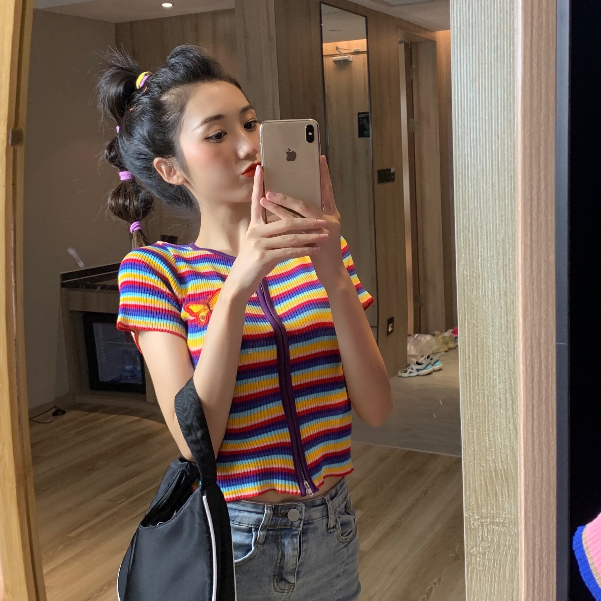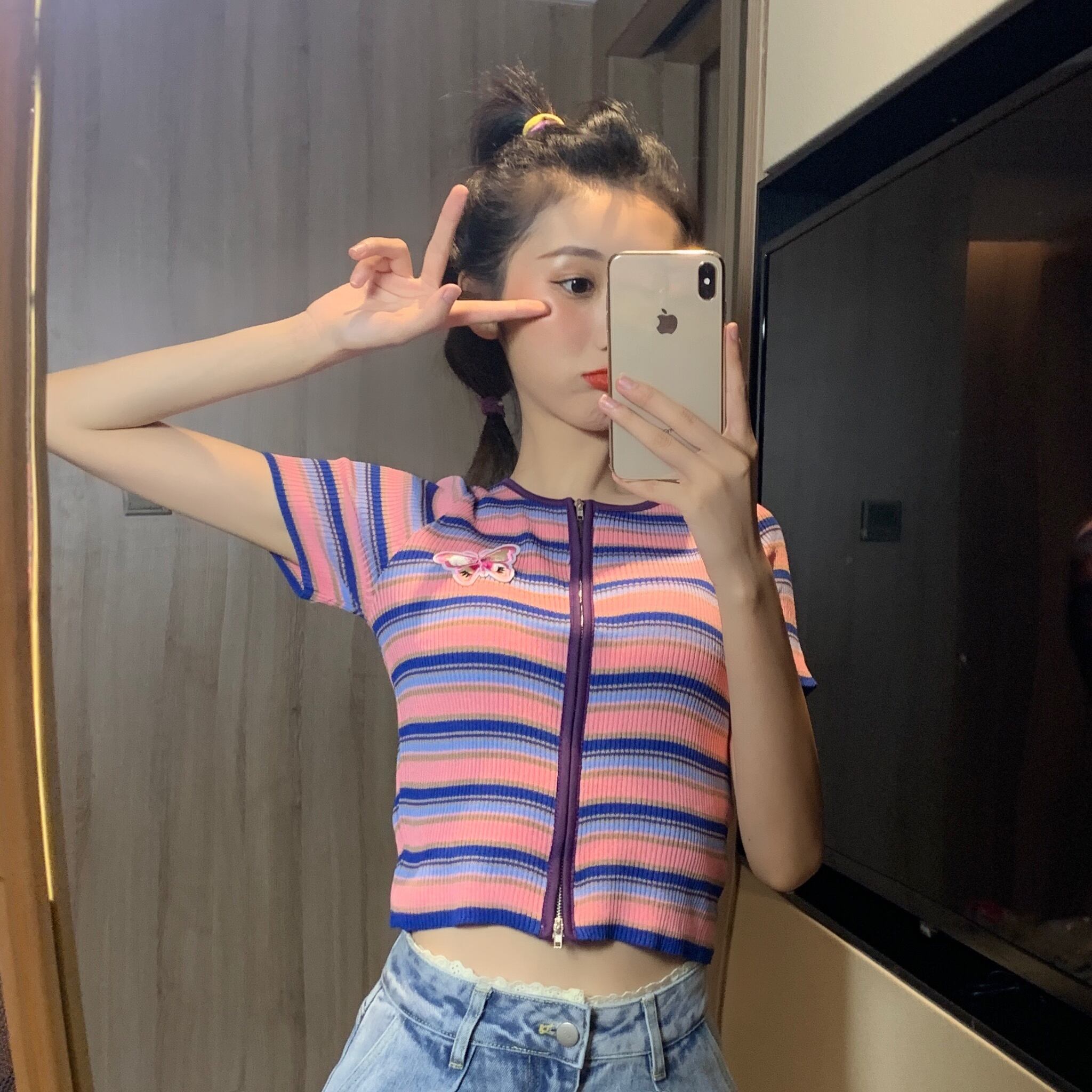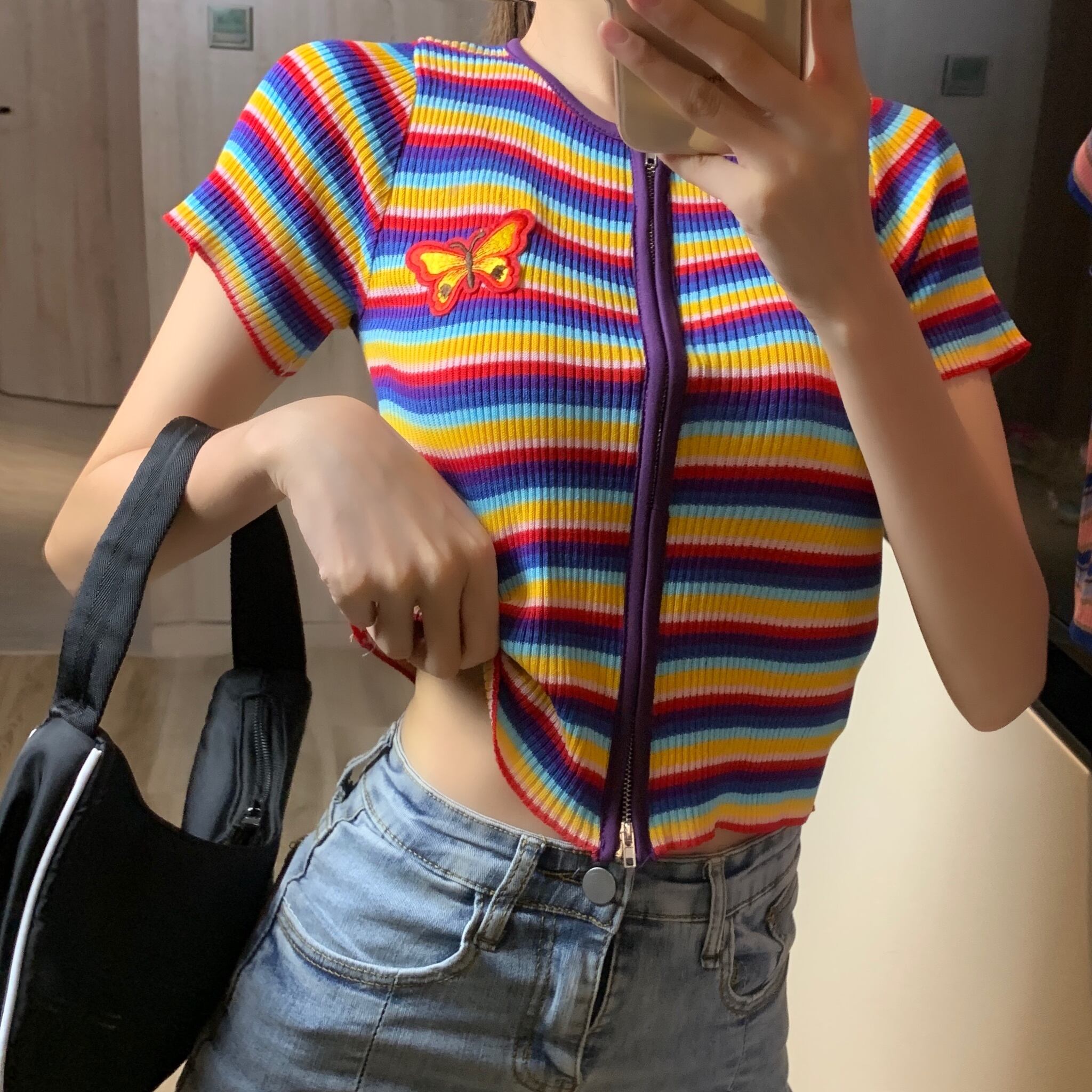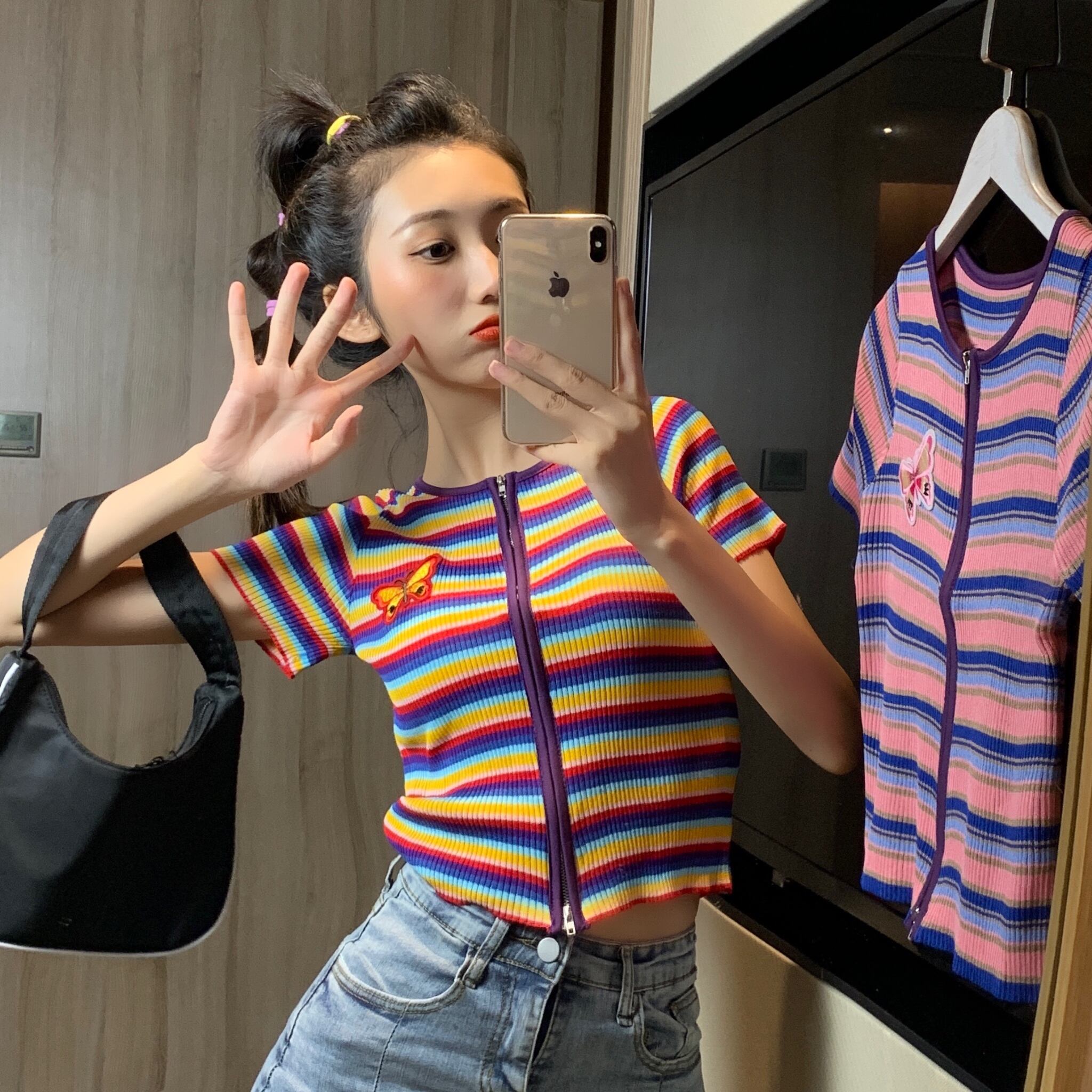 スプリングサマージッパーストライプセーター レッドTシャツ トップス 春物 夏物 YY-ファッション94531842737