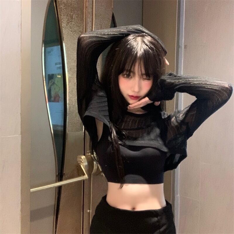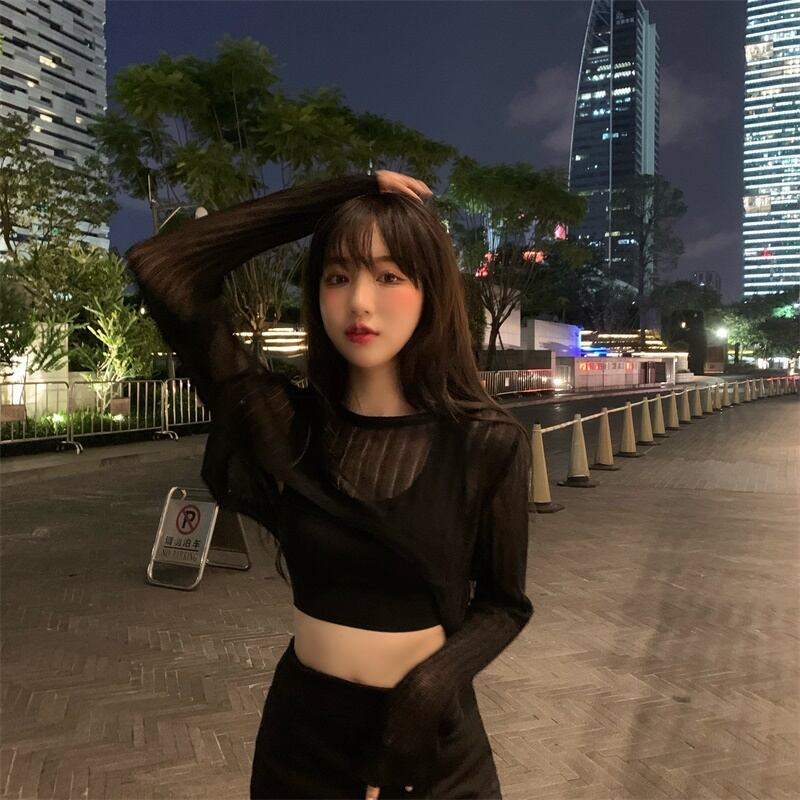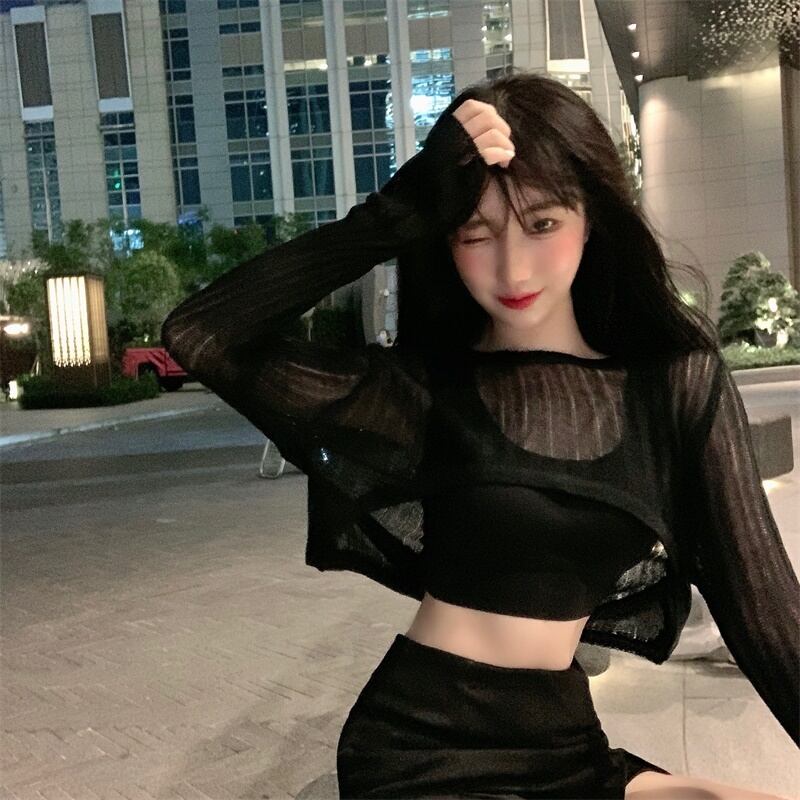 ショートブラックニットセーター スプリングジャケット ブラウス ロング 春物 YY-ファッション27127680705