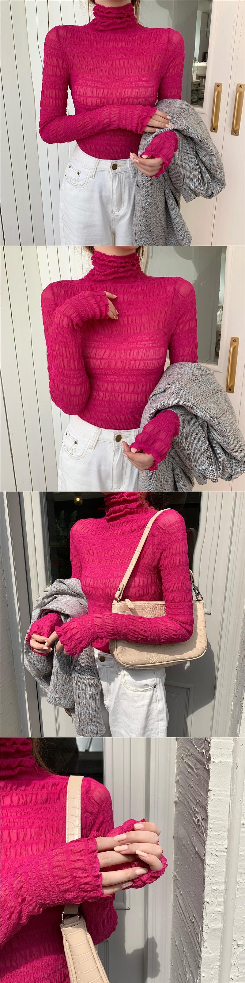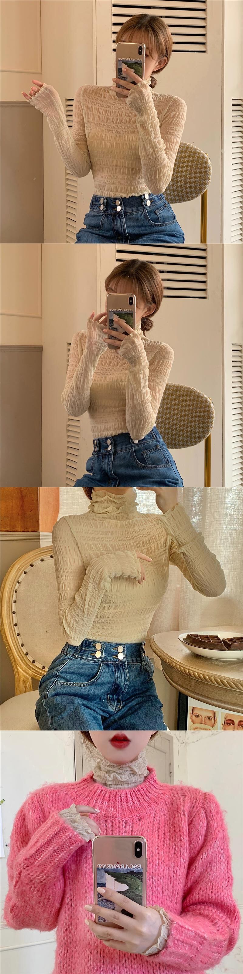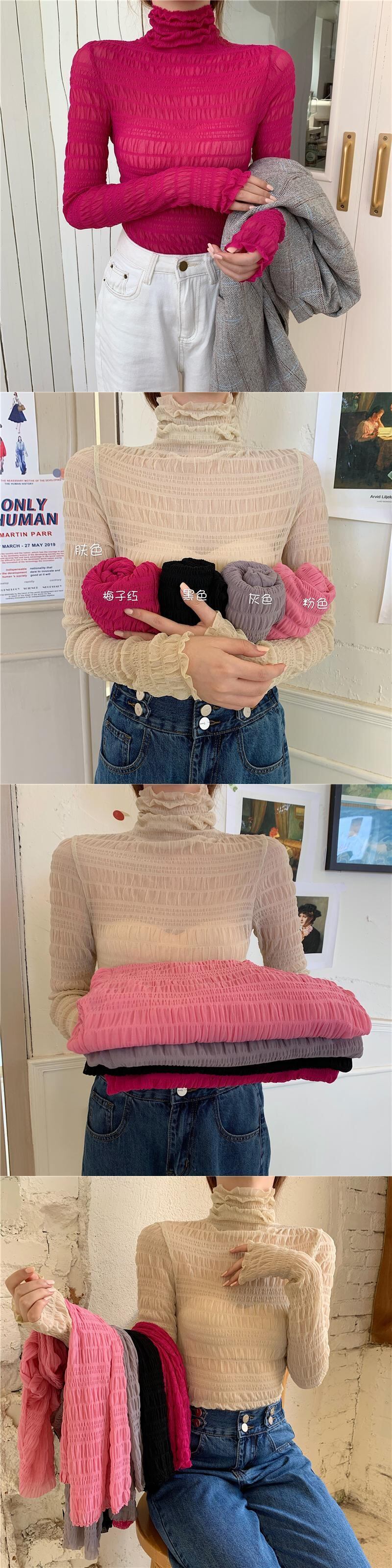レースシャツ レディーススプリングプリーツメッシュトップス Tシャツ ロング 春物 YY-ファッション72754603808